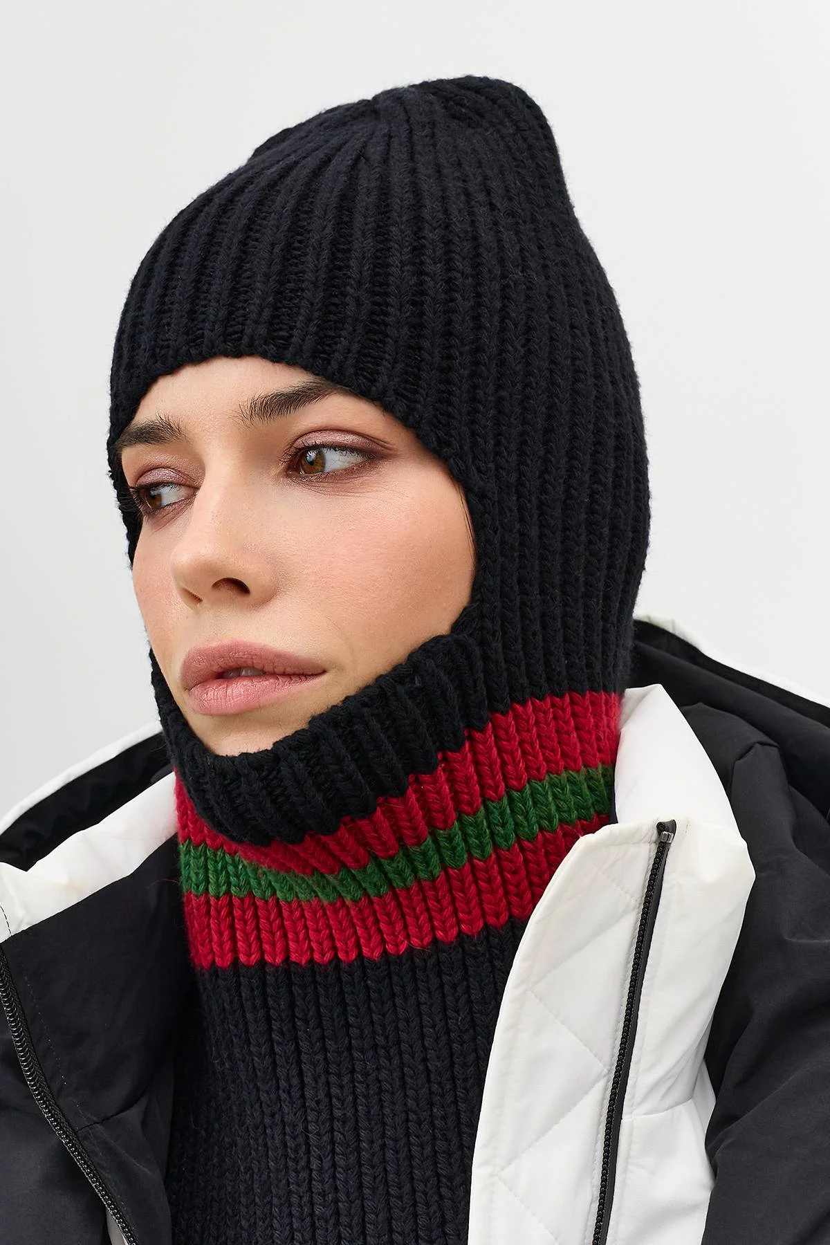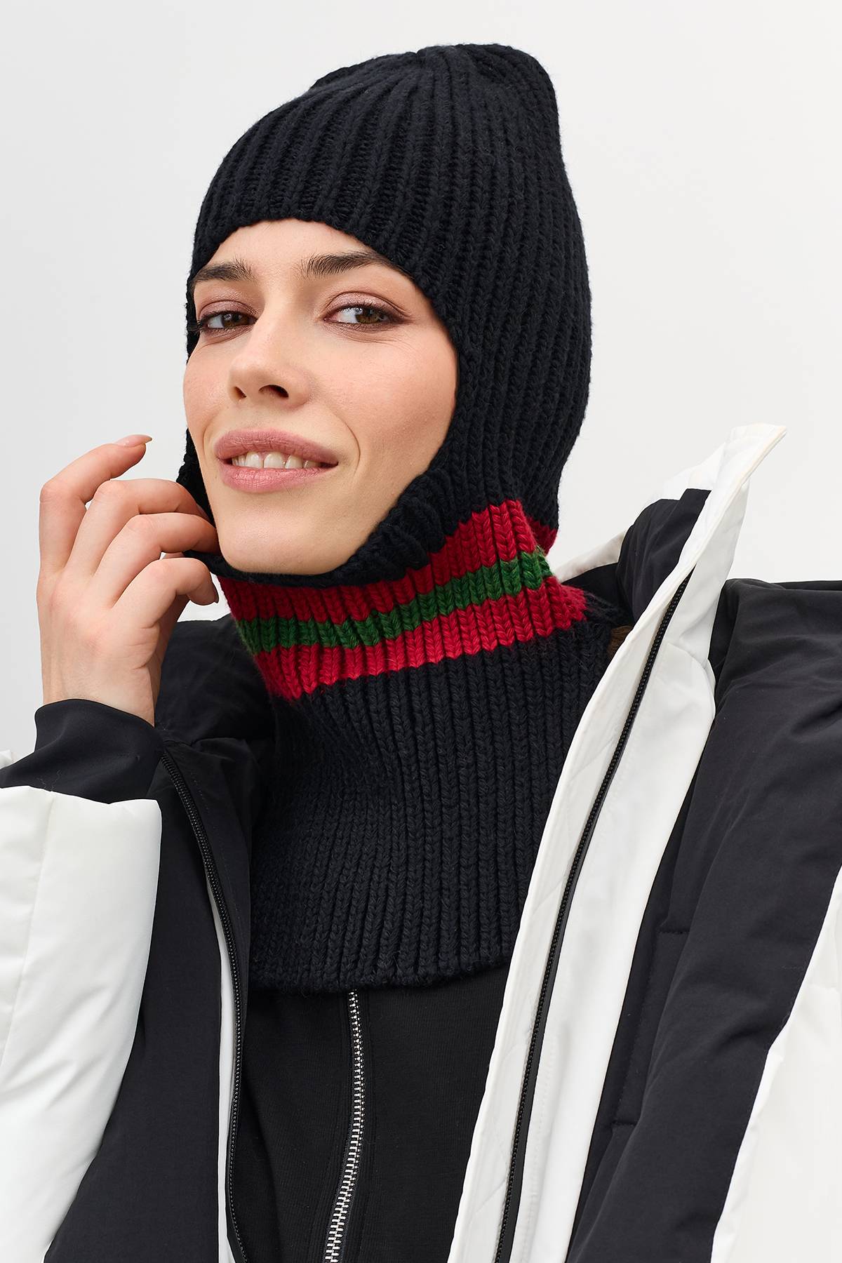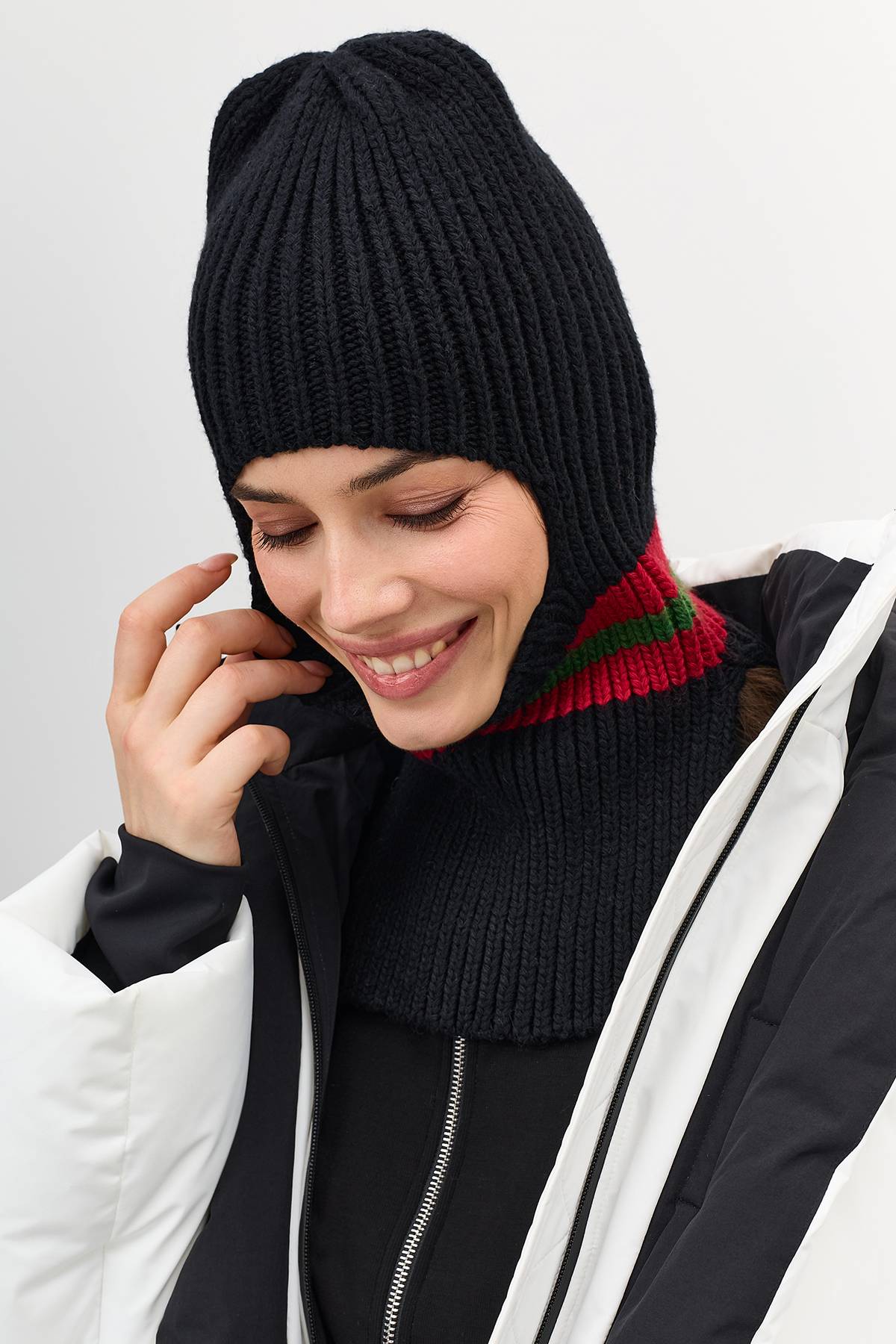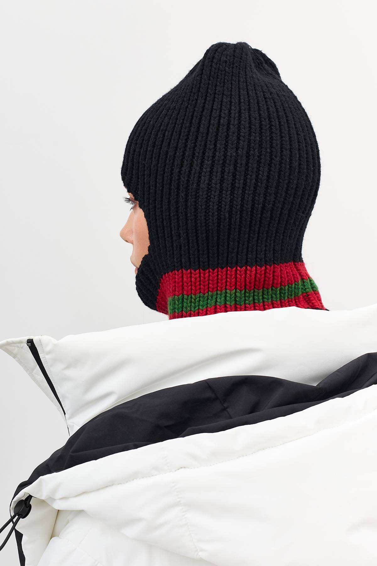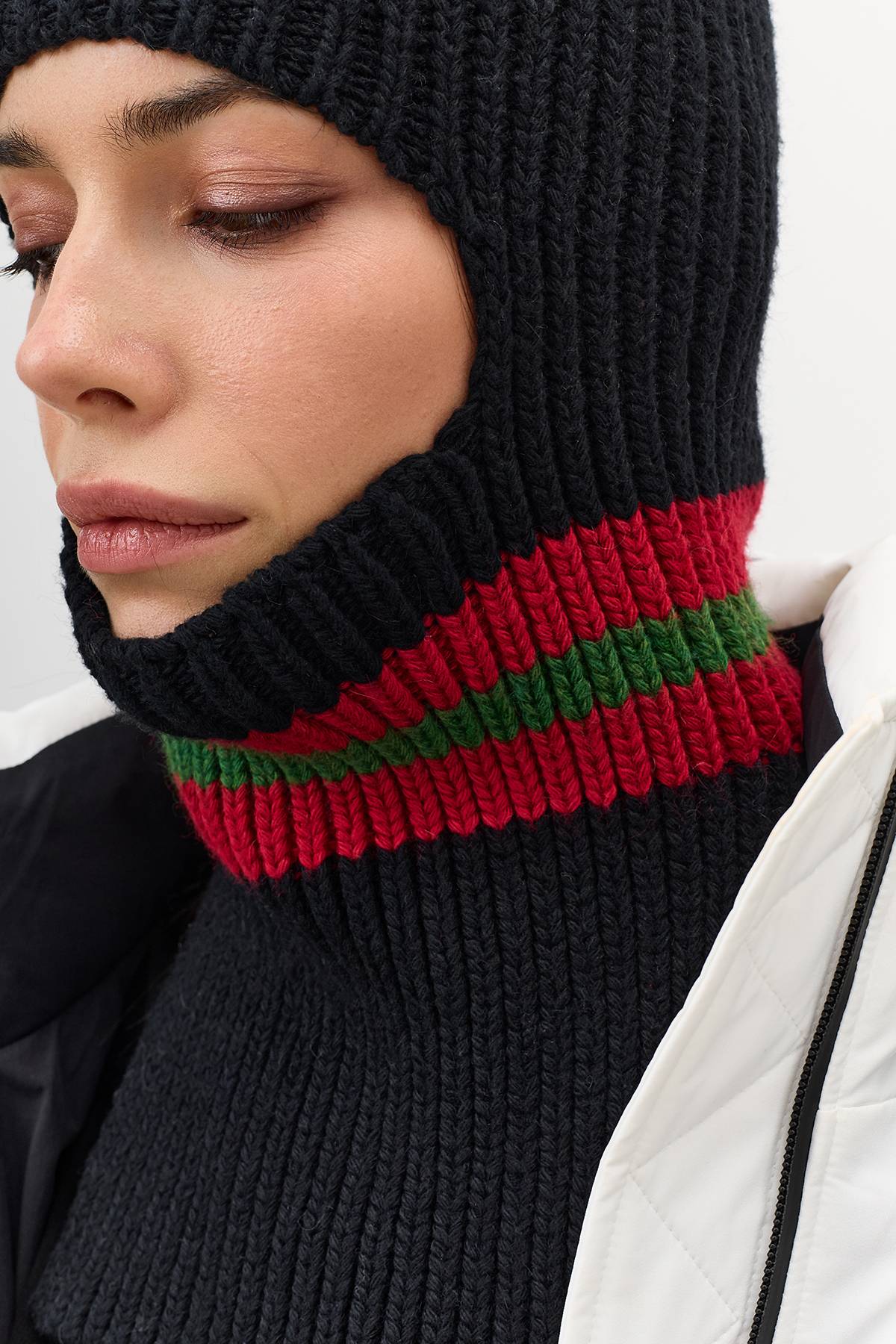 Балаклава в рубчик с яркой контрастной полосой. В составе вискоза и ангора.