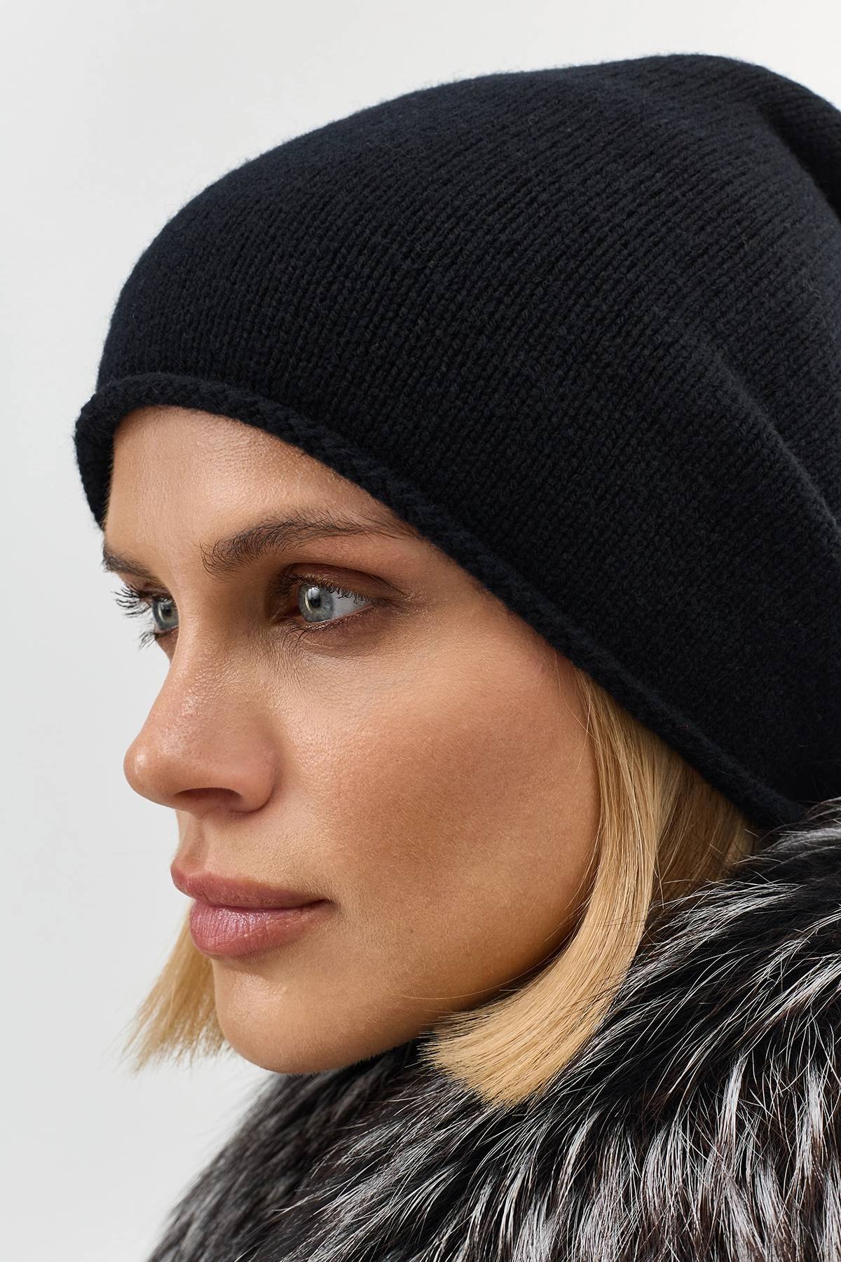 Базовая шапка из 100% шерсти. Гладкая вязка с закручивающимся краем.