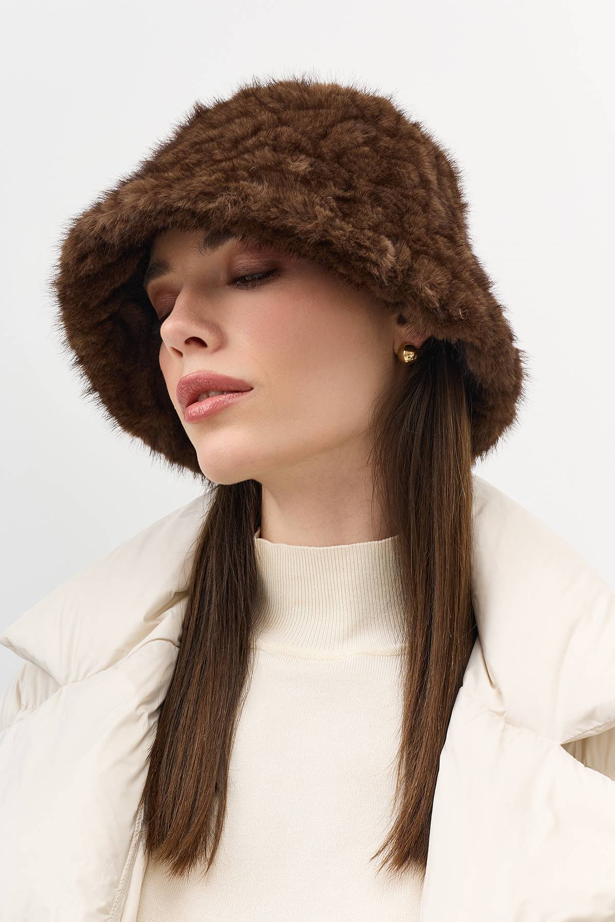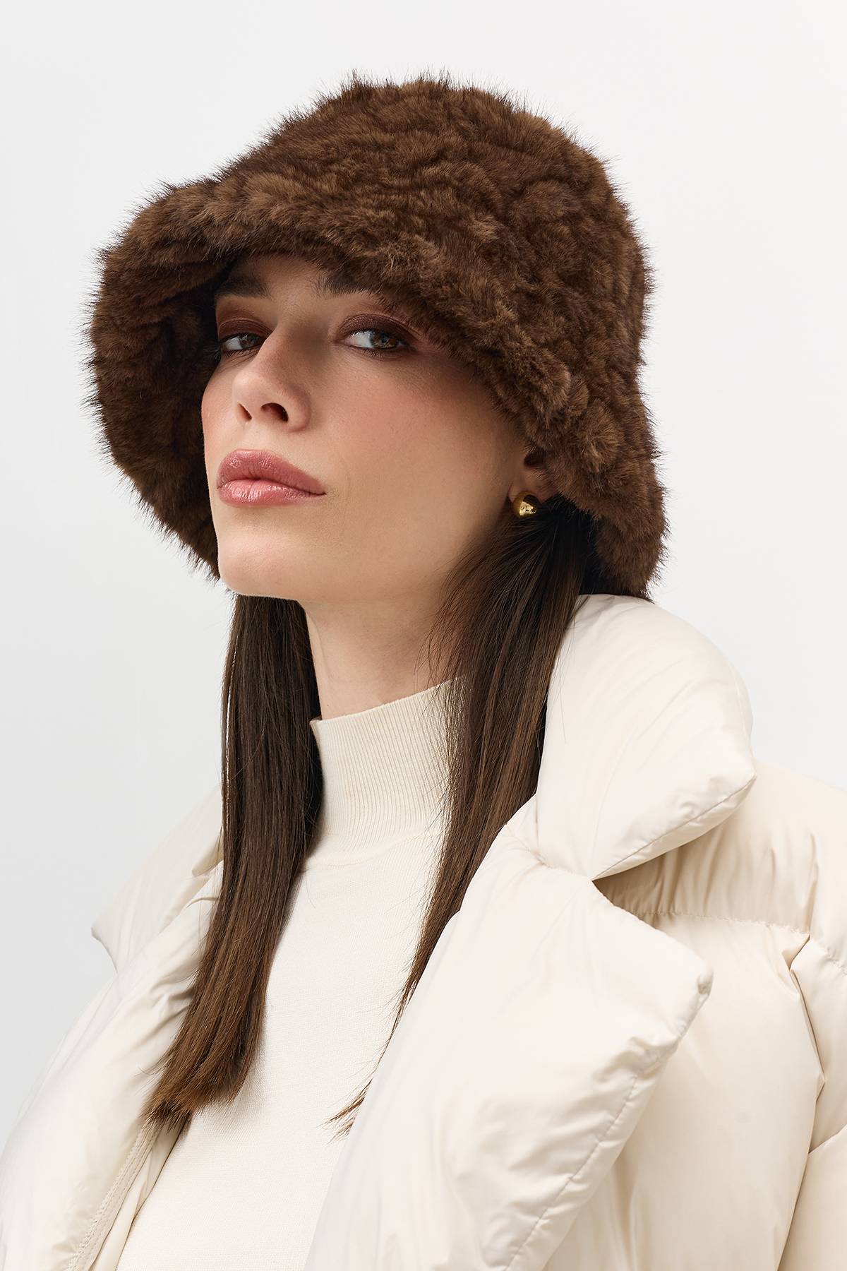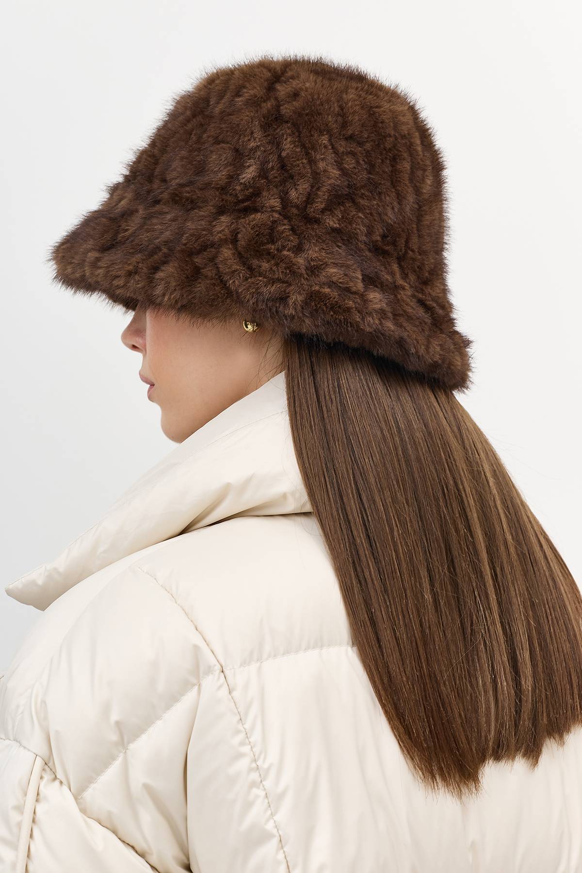 Меховая панама с узкими полями. Внутренняя регулируемая кулиска на шнурке.