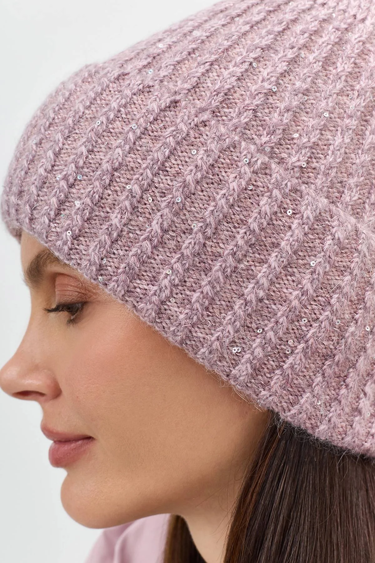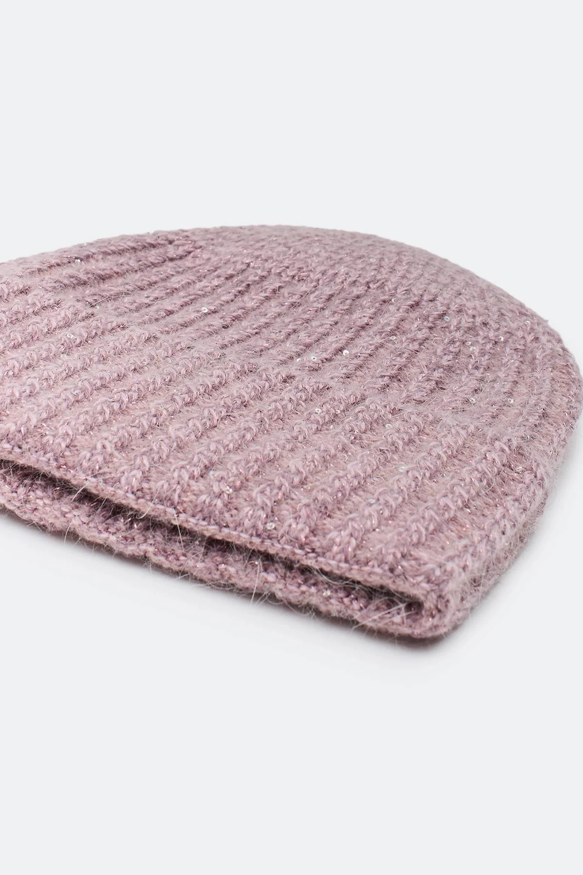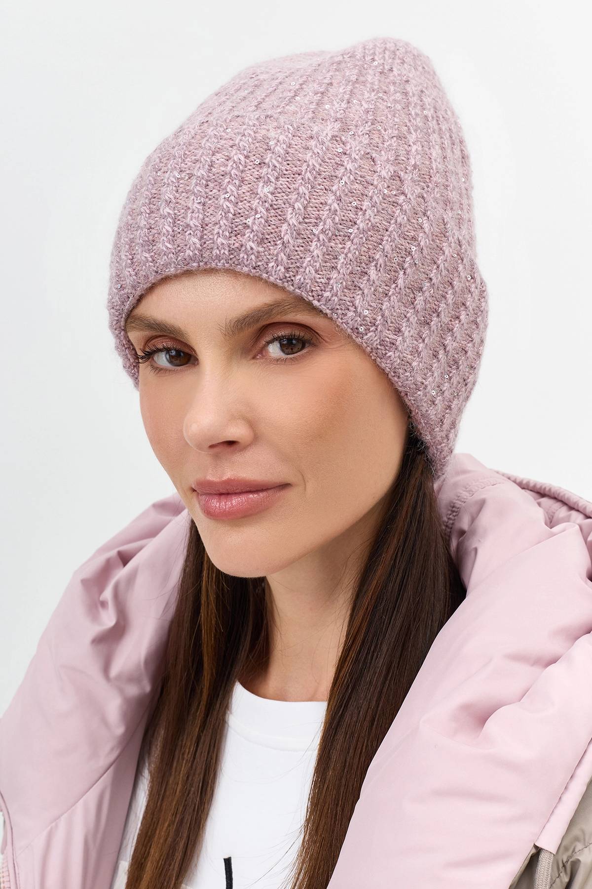 Шапка с мерцающим люрексом. Отделка в широкий рубчик. Дополнена широким отворотом. В составе ангора