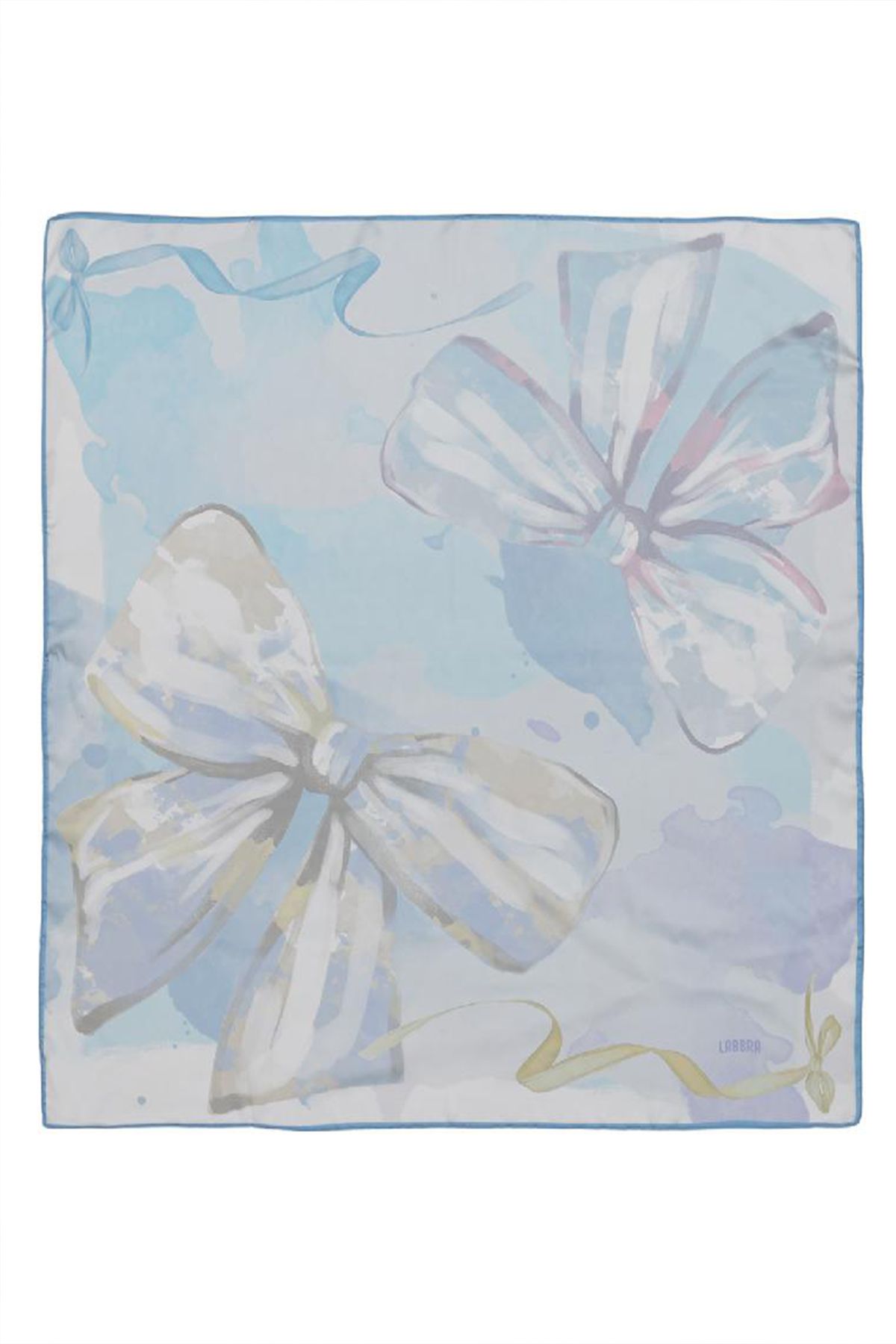Палантин с принтом в виде бантов в голубом цвете, 100х100