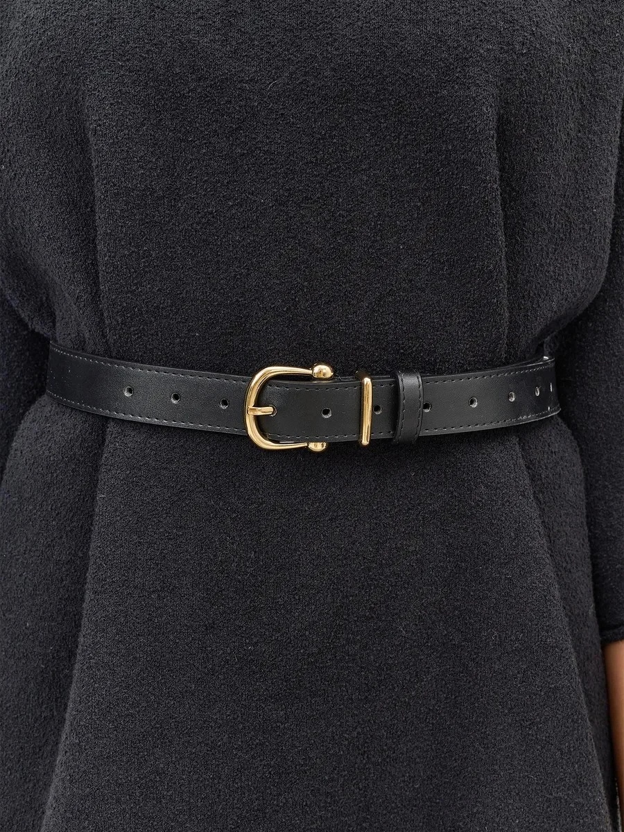 Классический кожаный ремень с золотистой пряжкой, One