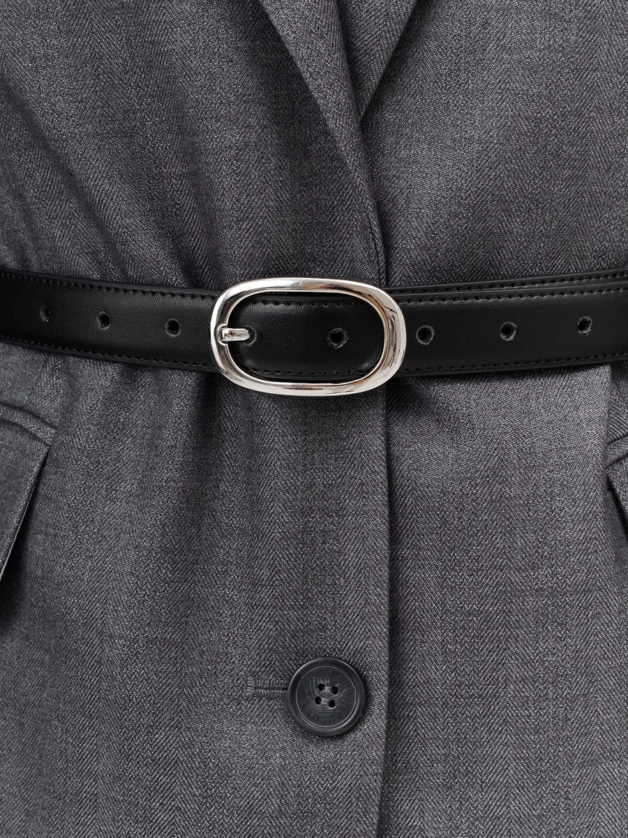 Ремень из натуральной кожи с круглой пряжкой, M