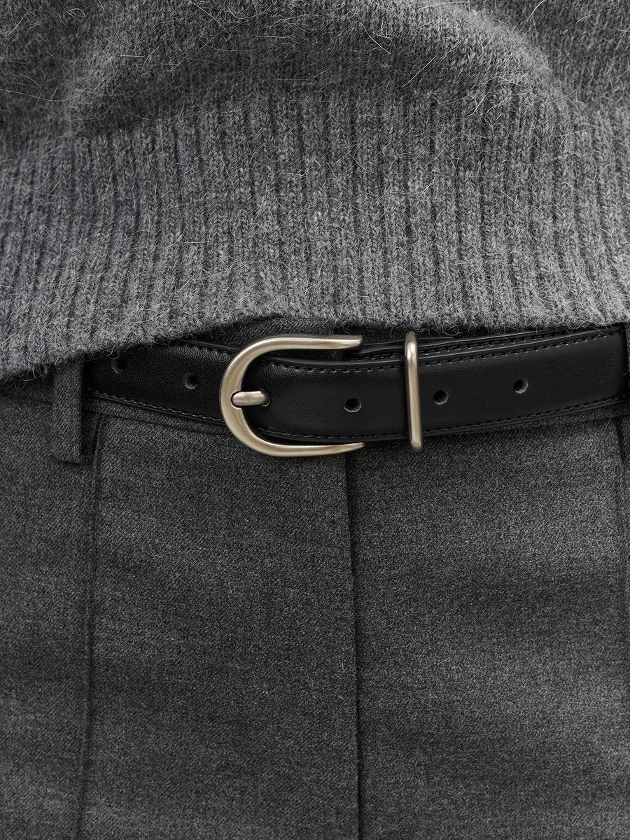 Узкий ремень из натуральной кожи с закругленной пряжкой