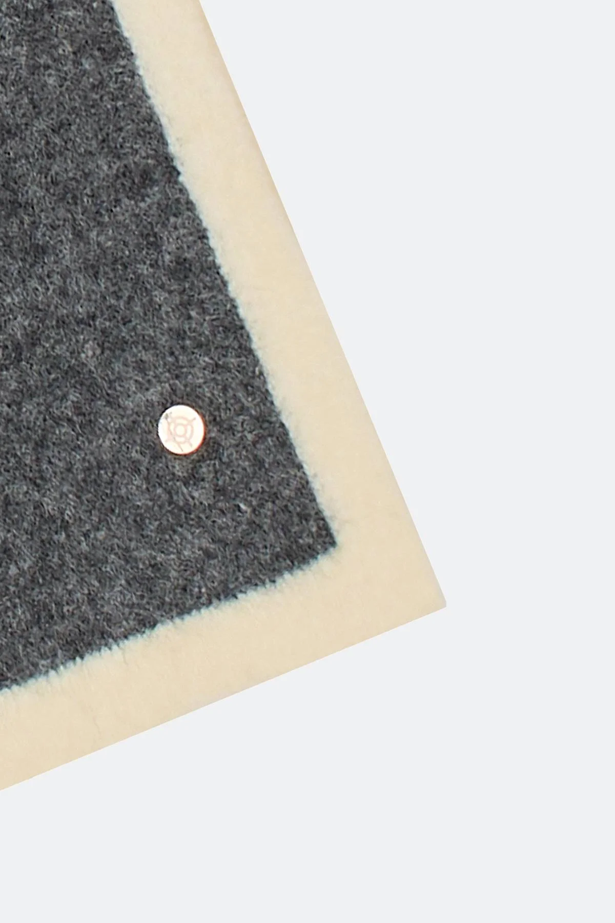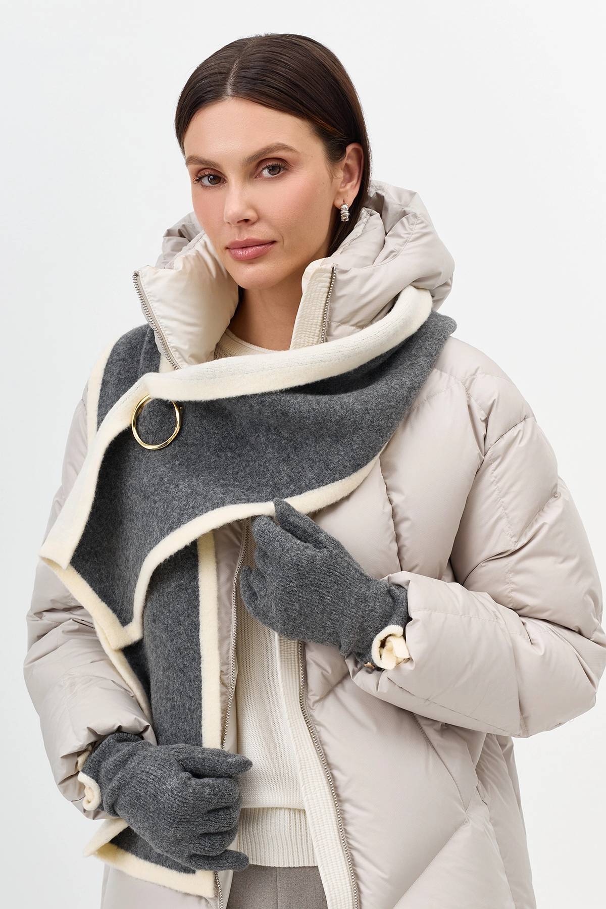 Вязаный двухцветный шарф из фасонной ворсистой пряжи с добавлением шерсти. Украшен металлическим шильдиком. Прямоугольная форма, one size