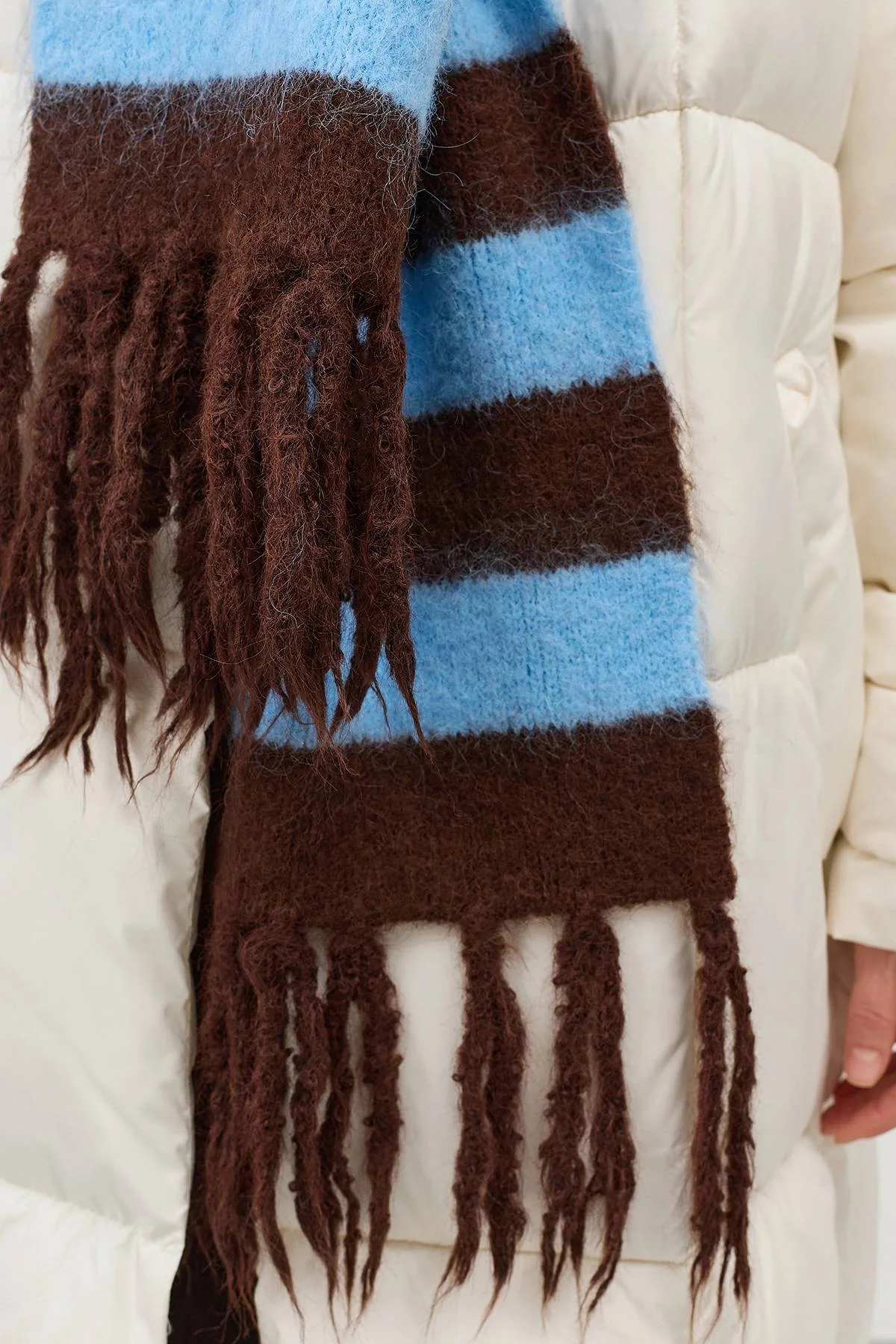 Шарф SAVAGE – это стильный и практичный аксессуар, который станет незаменимым спутником в холодное время года. Изготовленный из мягкой и уютной смеси полиэстера, нейлона и шерсти, он обеспечит вам тепло и комфорт в самые морозные дни. Яркий красный цвет в полоску придает шарфу яркий и стильный вид, а бахрома добавляет ему игривости и шарма. Этот большой и теплый шарф станет прекрасным подарком для любимой, мамы или коллеги на день рождения, день матери или день учителя. Он прекрасно дополнит любой зимний образ, добавив ему нотку элегантности и уюта. Яркий шарф из объемной пряжи с добавлением шерсти в широкую полоску. Деликатная бахрома по низу. Дополнен металлической деталью. Прямоугольная форма, one size