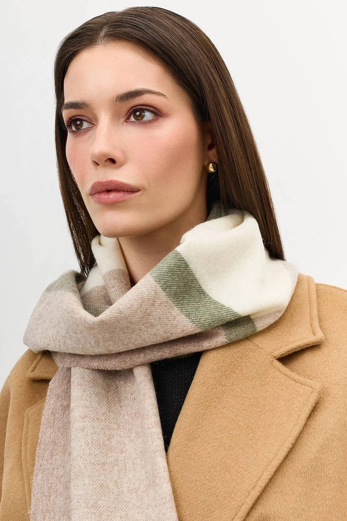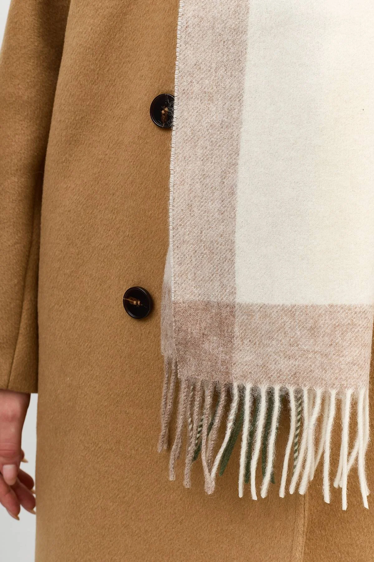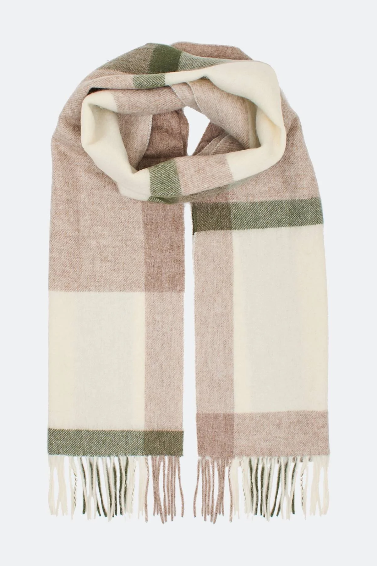 Шерстяной шарф в клетку с деликатной бахромой по краю. Прямоугольная форма, one size