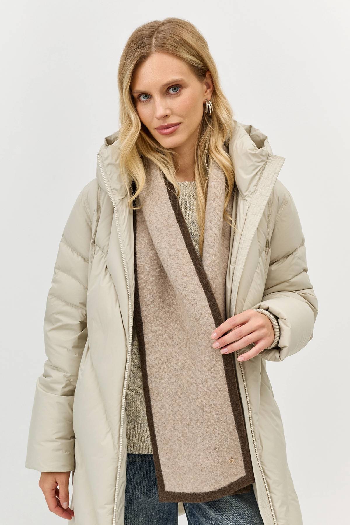 Светлый вязаный шарф с контрастным краем, One
