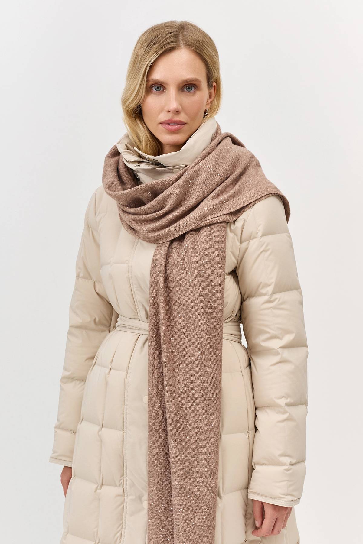 Светлый вязаный шарф с контрастным краем, One Светлый вязаный шарф с контрастным краем, One Светлый вязаный шарф с контрастным краем, One