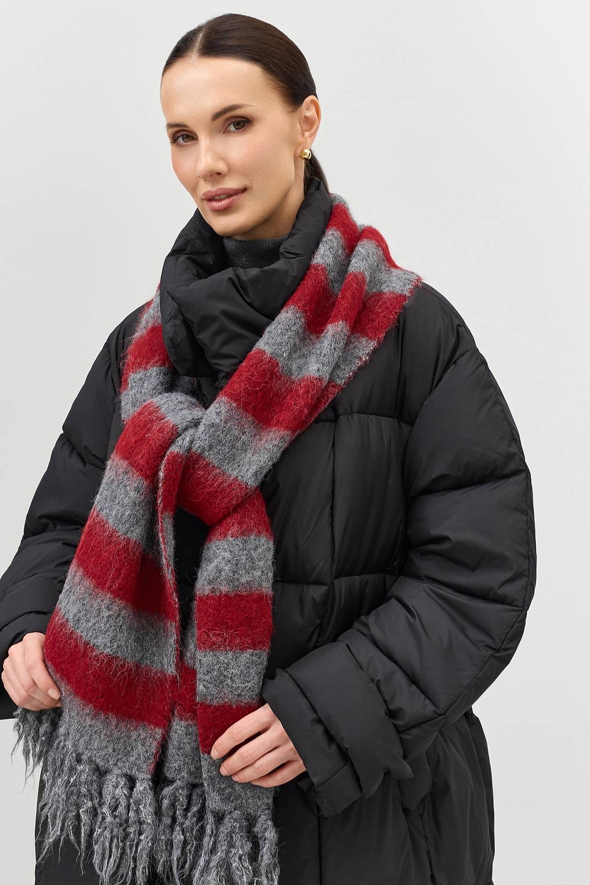 Шарф SAVAGE – это стильный и практичный аксессуар, который станет незаменимым спутником в холодное время года. Изготовленный из мягкой и уютной смеси полиэстера, нейлона и шерсти, он обеспечит вам тепло и комфорт в самые морозные дни. Яркий красный цвет в полоску придает шарфу яркий и стильный вид, а бахрома добавляет ему игривости и шарма. Этот большой и теплый шарф станет прекрасным подарком для любимой, мамы или коллеги на день рождения, день матери или день учителя. Он прекрасно дополнит любой зимний образ, добавив ему нотку элегантности и уюта. Яркий шарф из объемной пряжи с добавлением шерсти в широкую полоску. Деликатная бахрома по низу. Дополнен металлической деталью. Прямоугольная форма, one size