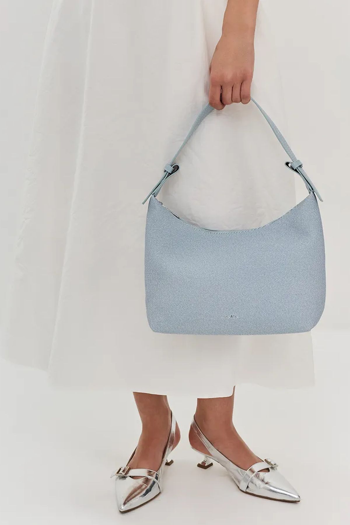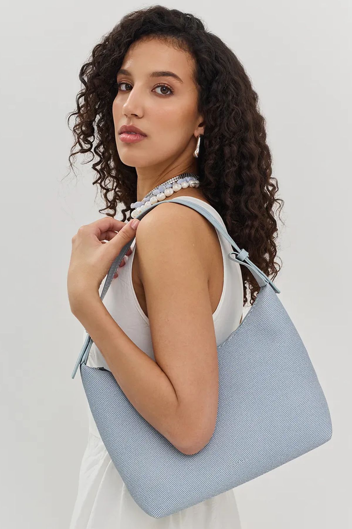 Сумка-багет голубого цвета из рельефной искусственной кожи, One