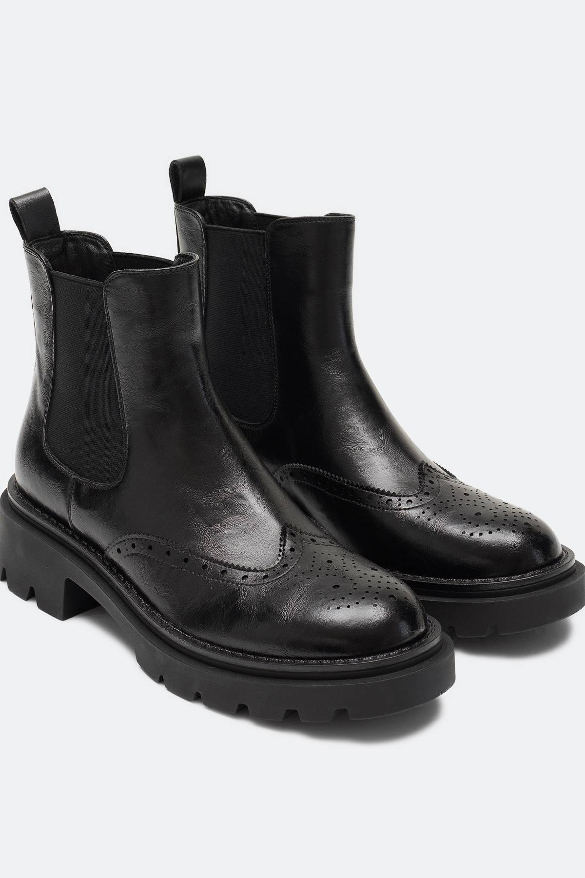 Ботинки челси на высокой рифленой подошве. Эластичные вставки для удобства надевания. Закругленный мыс с перфорацией. Подкладка и стелька из теплого текстиля. Рифленая подошва из термопластичной резины.