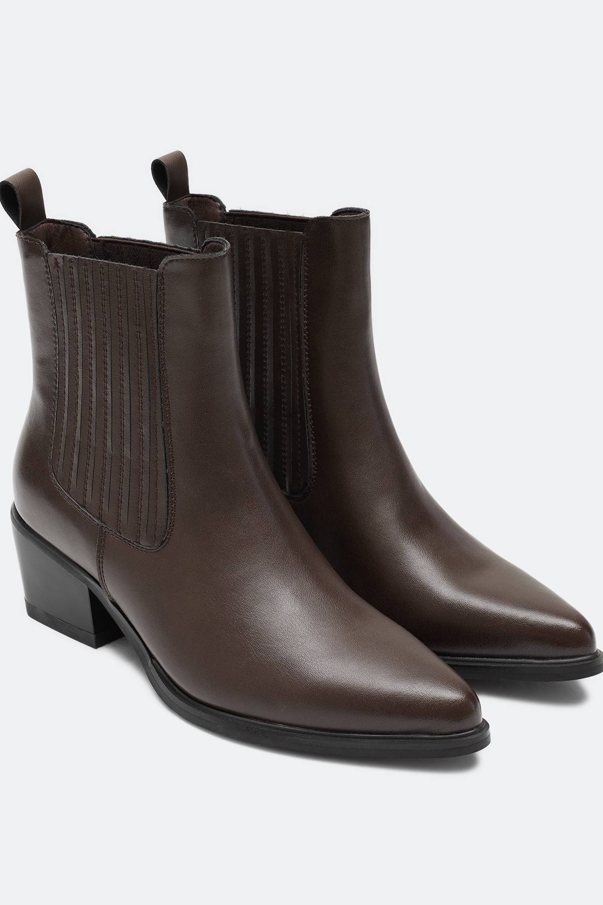 Ботинки-казаки из натуральной кожи в ковбойском стиле. Заостренный мыс. Эластичные вставки для удобства надевания. Тонкая подошва из термопластичной резины. Устойчивый каблук средней высоты и подошва из резины обеспечивают комфорт при ходьбе. Подкладка и стелька из текстиля.
