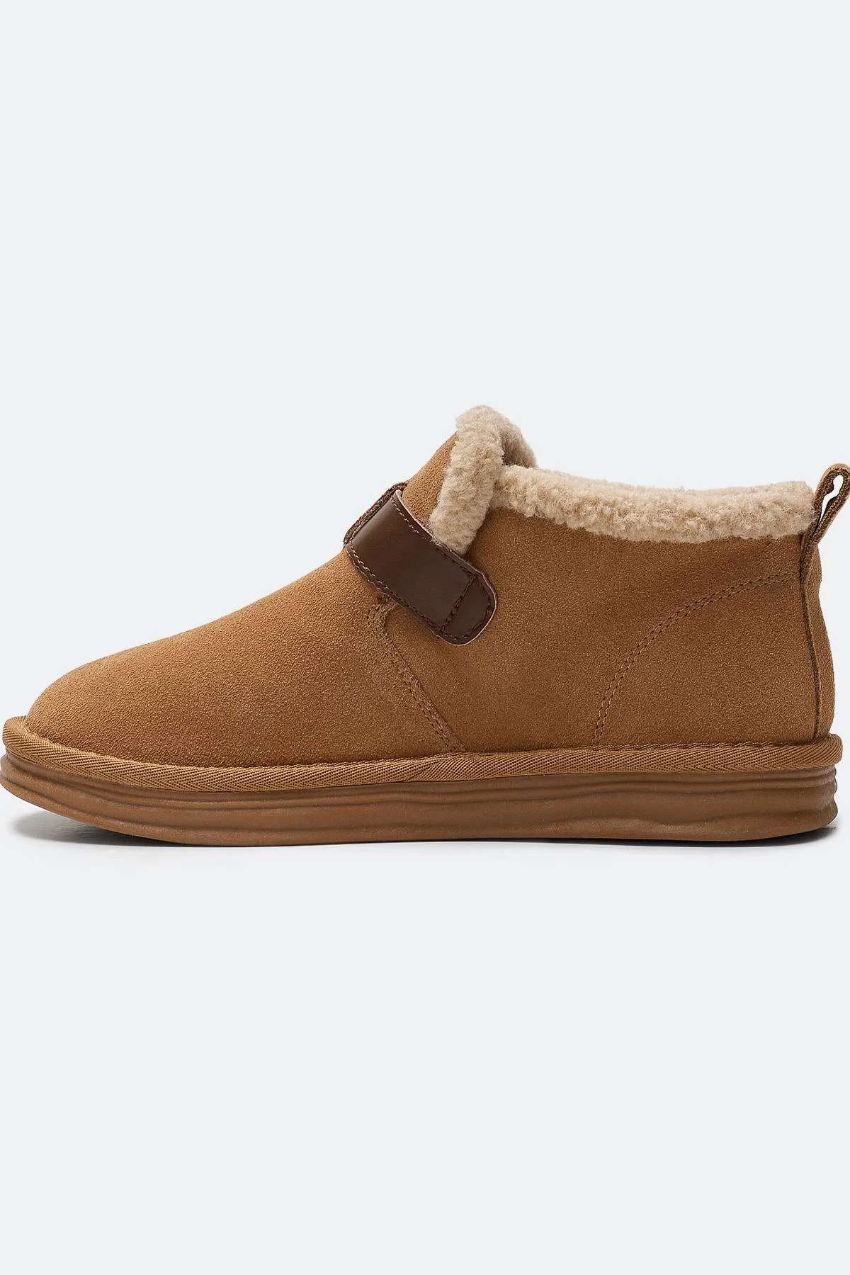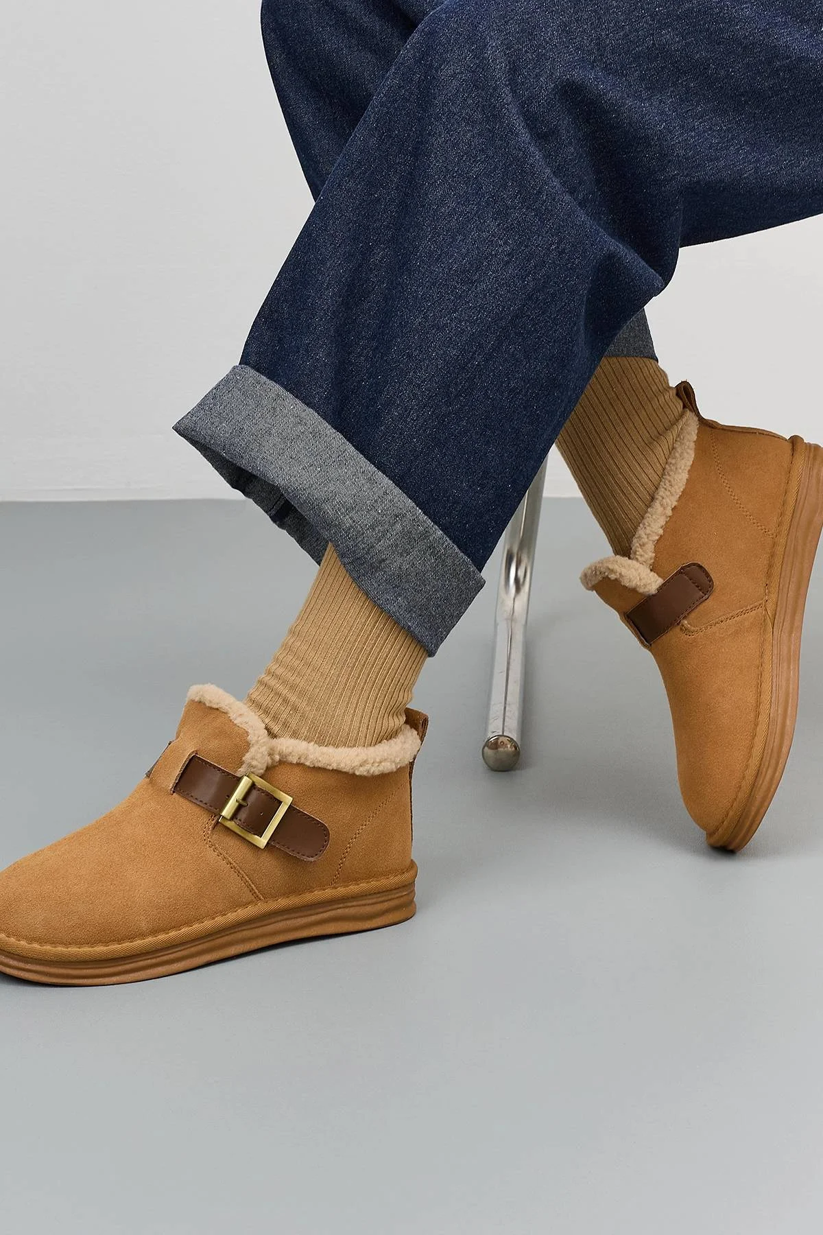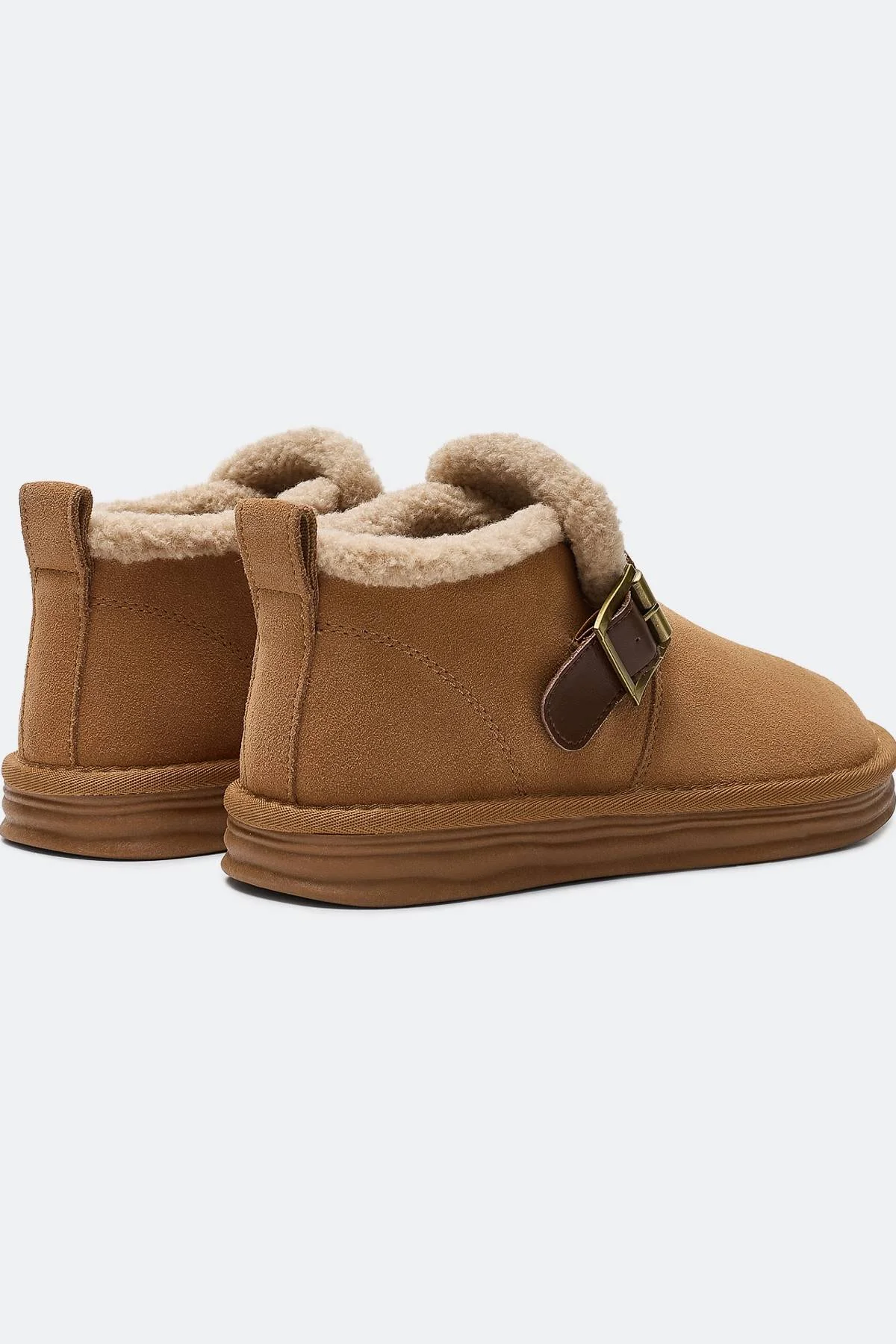 Полуботинки из натуральной замши. Закругленный мыс. Декоративный ремешок с пряжкой. Подкладка и стелька из смесовой шерсти. Низкая подошва из термопластичной резины.