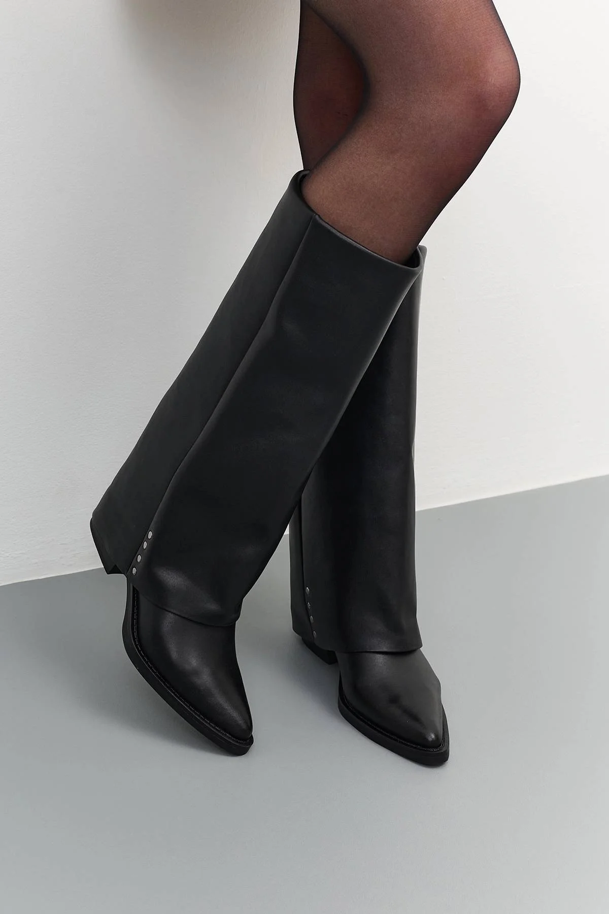 Кожаные сапоги с расширенным голенищем, 38