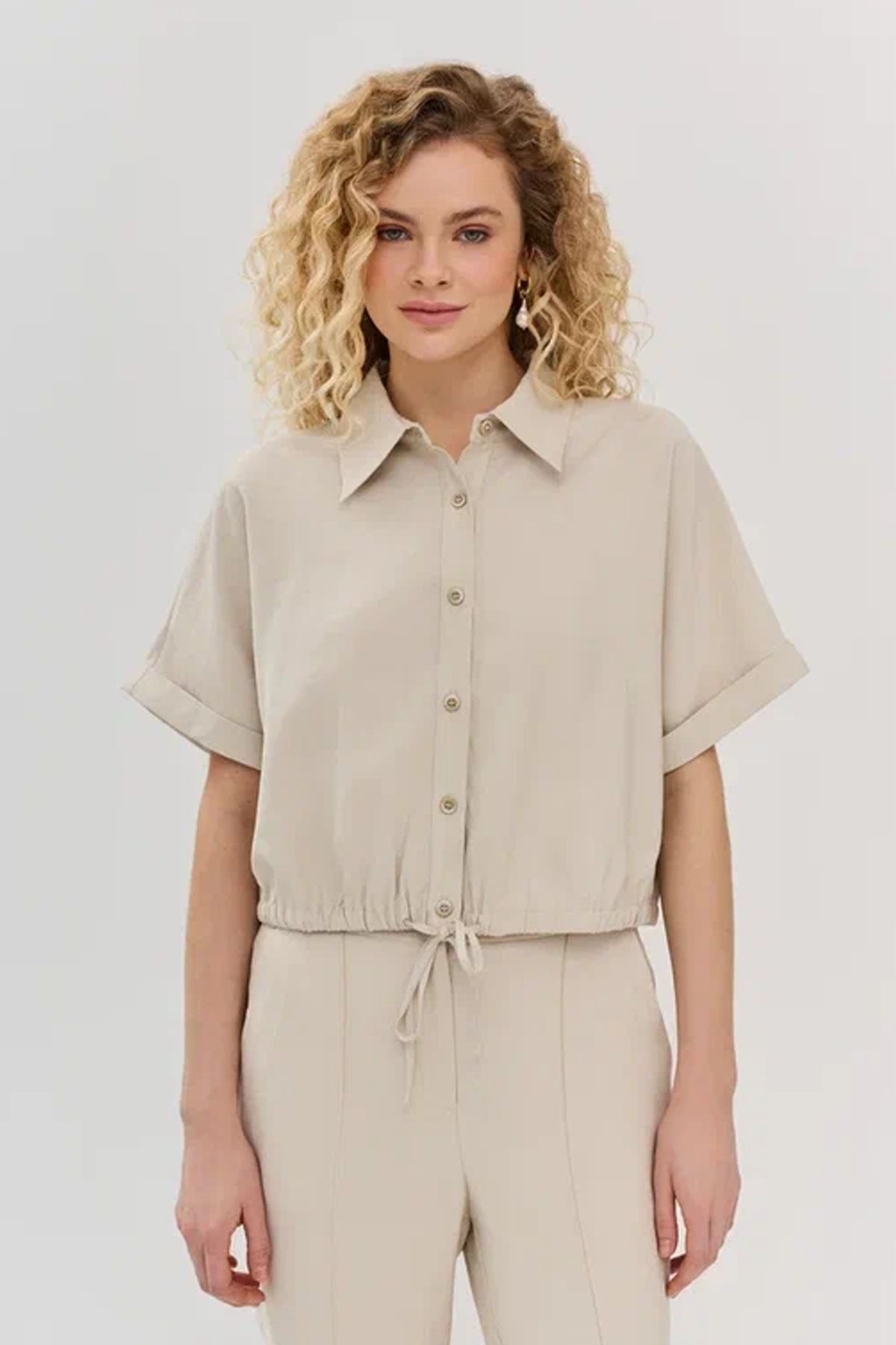 Блузка из мягкой вискозы в светло-бежевом цвете, 44р