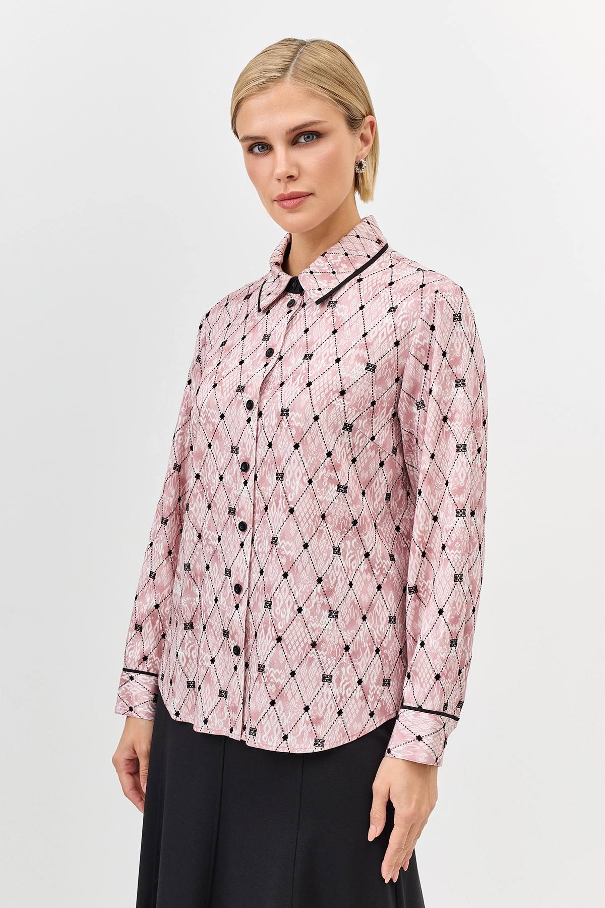 Блузка из вискозы с брендированным принтом, 42