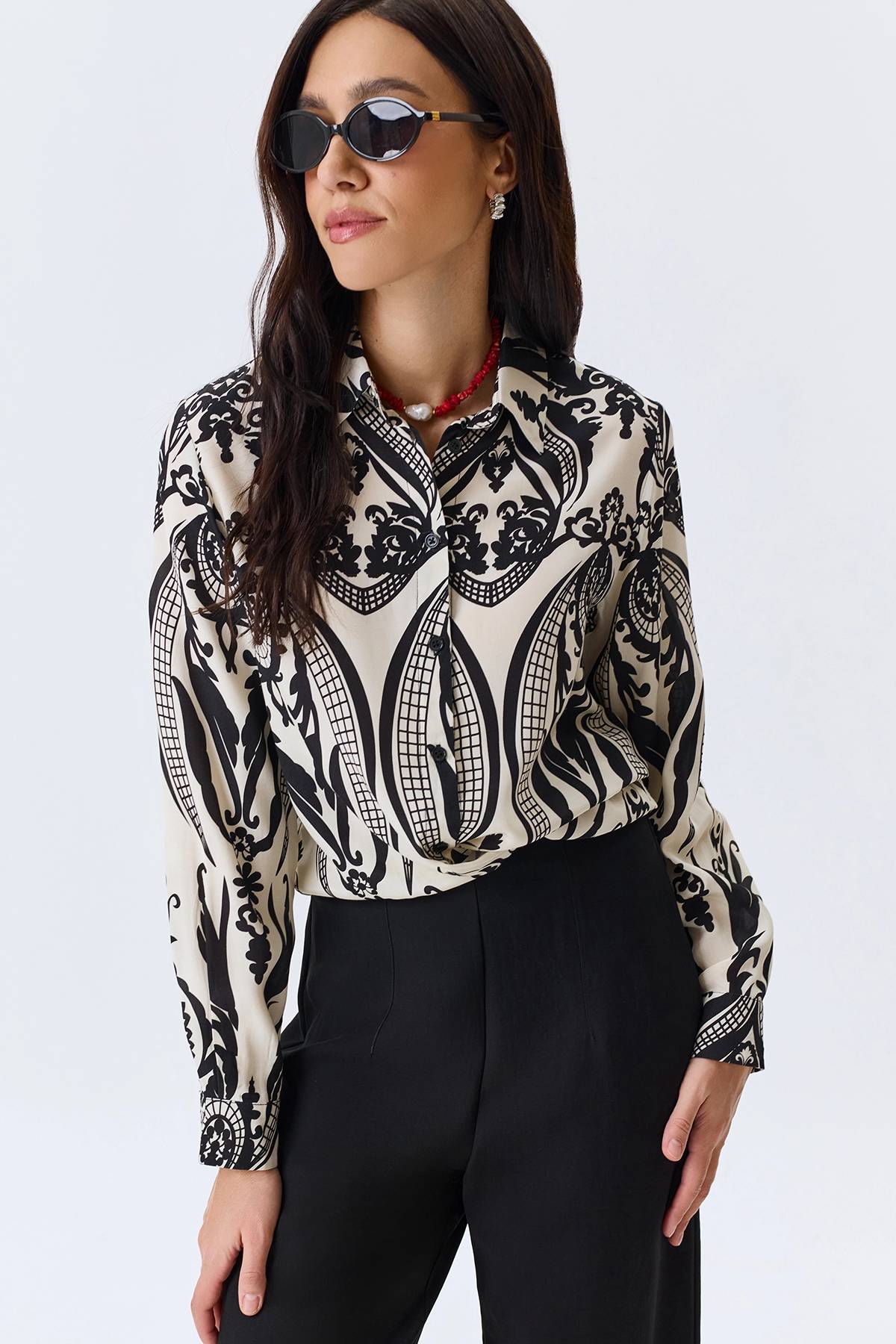 Блузка из вискозы с этническим орнаментом, 52
