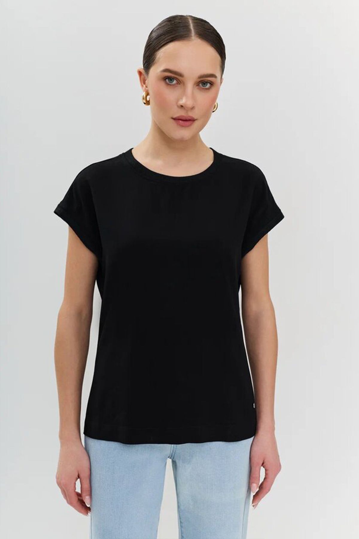Блузка чёрного цвета со спущенным коротким рукавом, 42р