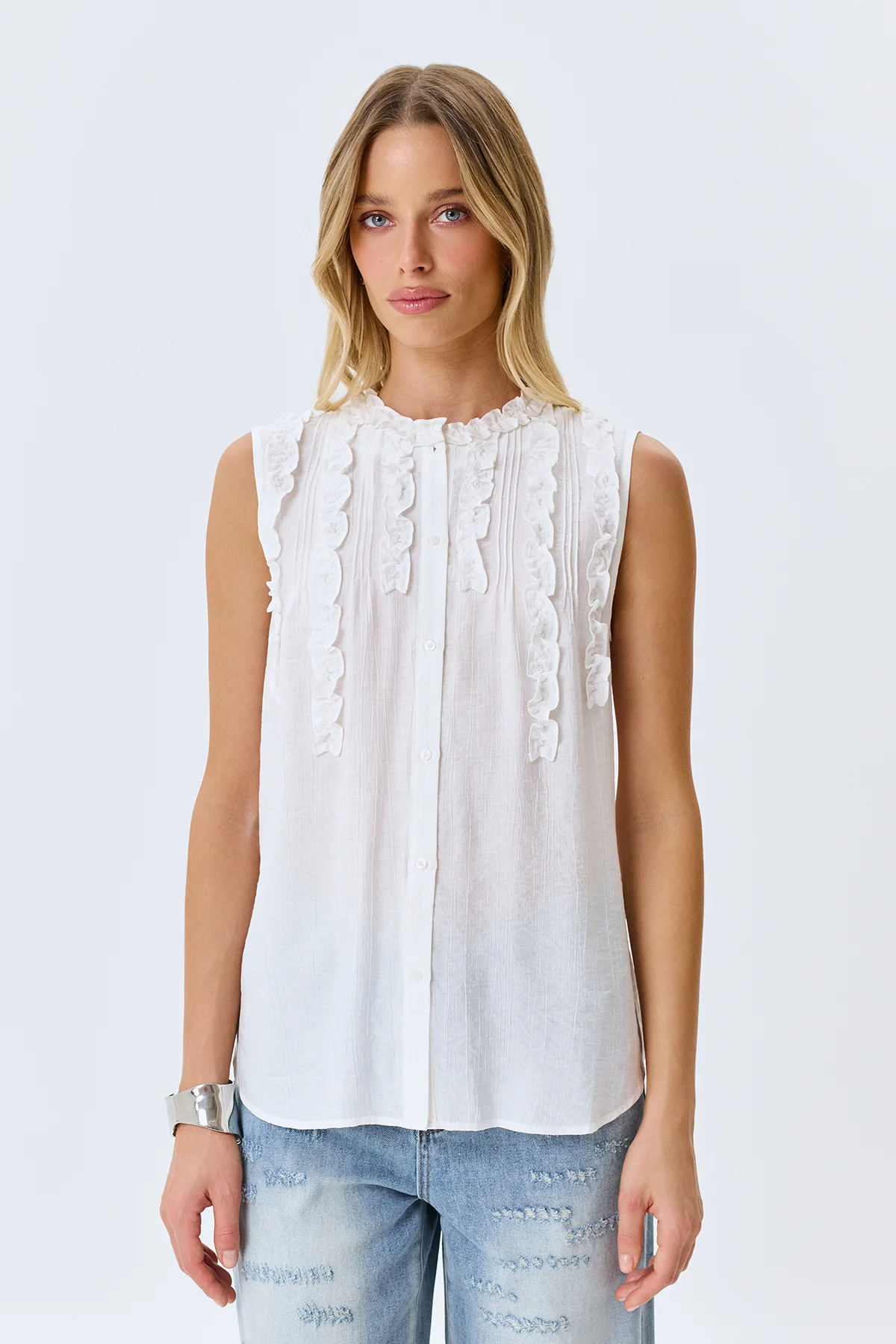 Блузка топ с романтичными рюшами, 46