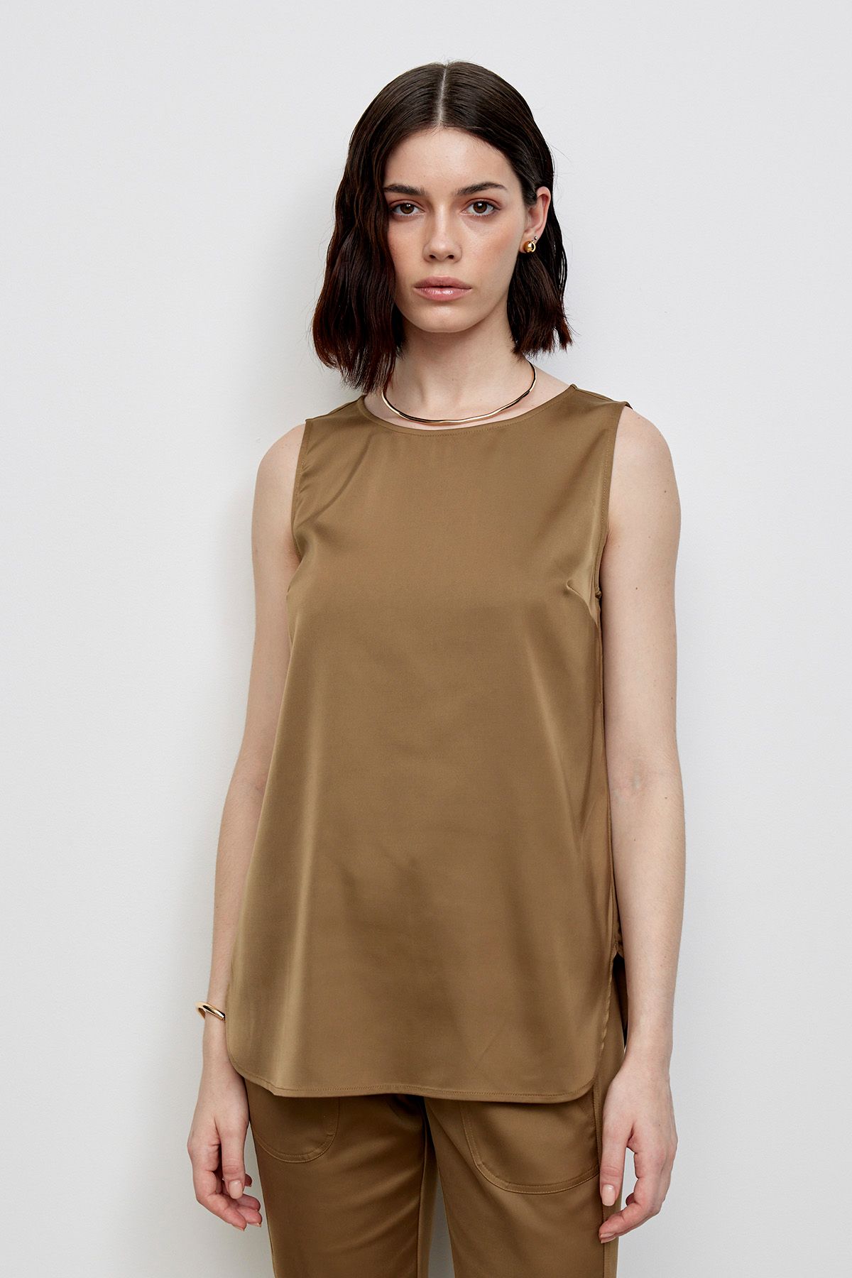 Блузка торговой марки Bulmer. Материал изделия: полиэстер, район, эластан. Свободный силуэт. Разрезы по бокам. Модель без рукавов.
