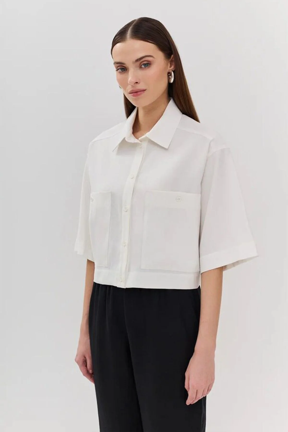 Классическая укороченная блузка с коротким рукавом, 40р