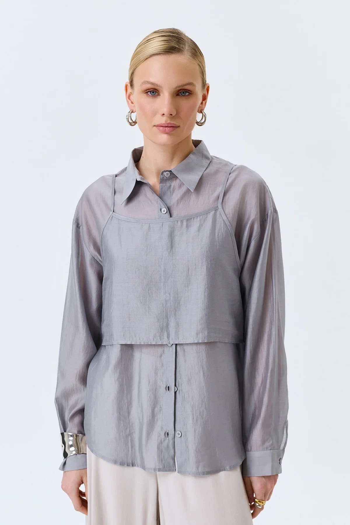 Комбинированная блузка из тенселя, 48