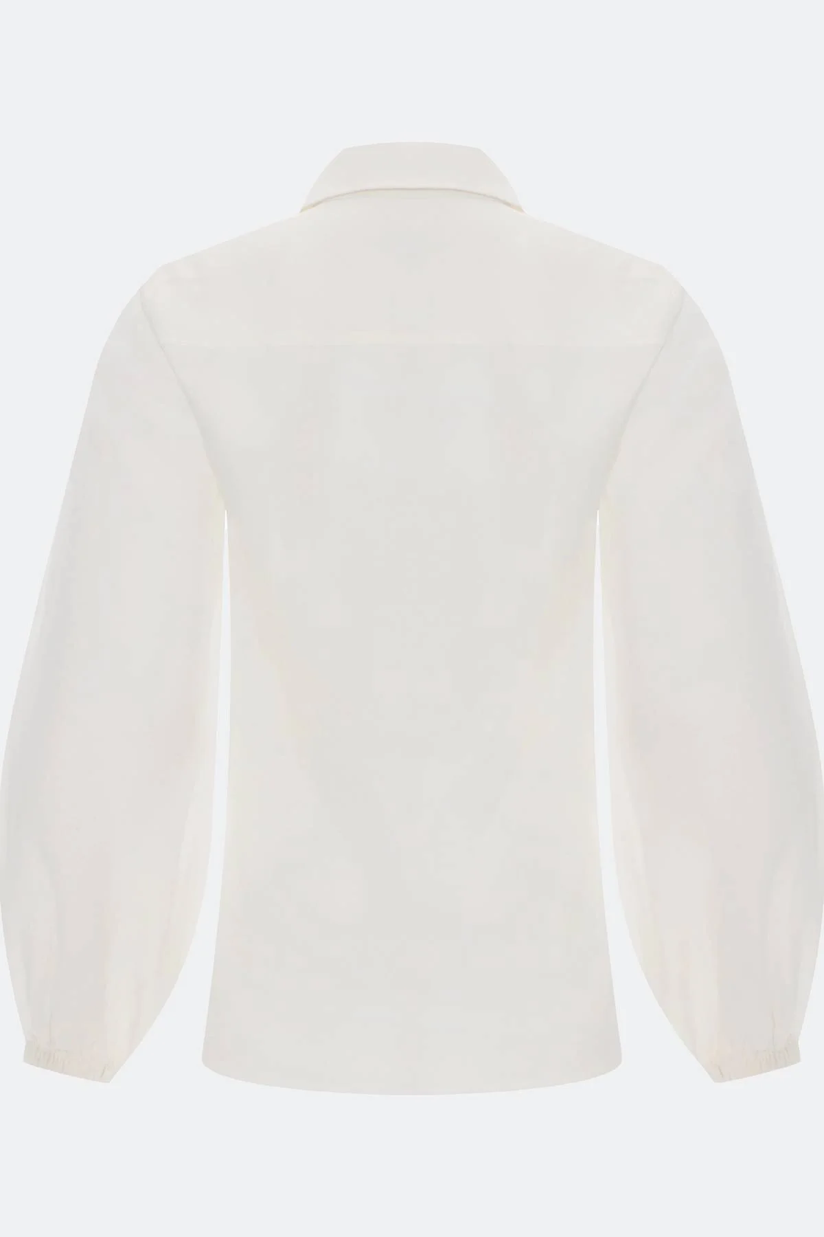 Блузка Savage - блузка с длинными объемными рукавами из 100% вискозы. Полуприталенный силуэт. Отложной воротник. Потайная застежка на пуговицы. Резинки по низу рукавов. В комплекте с черным ремнем SVG202502.