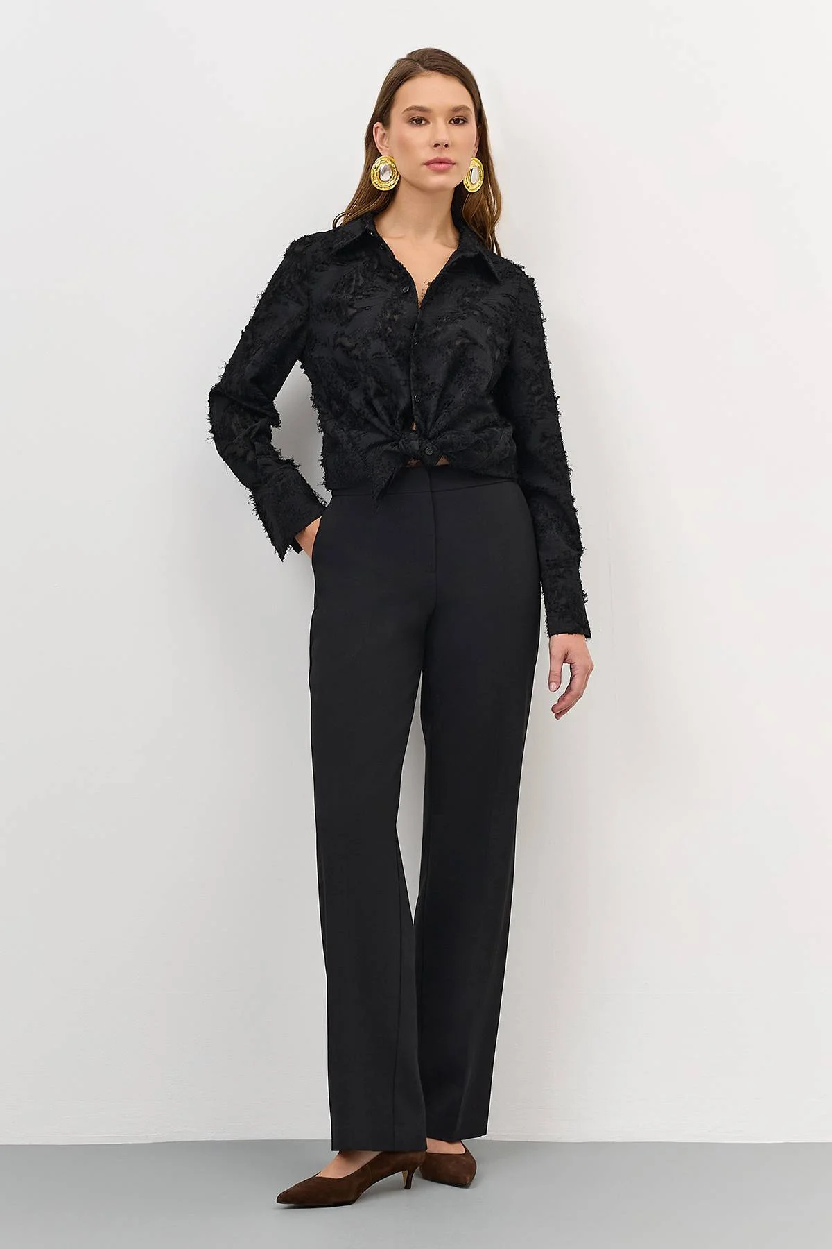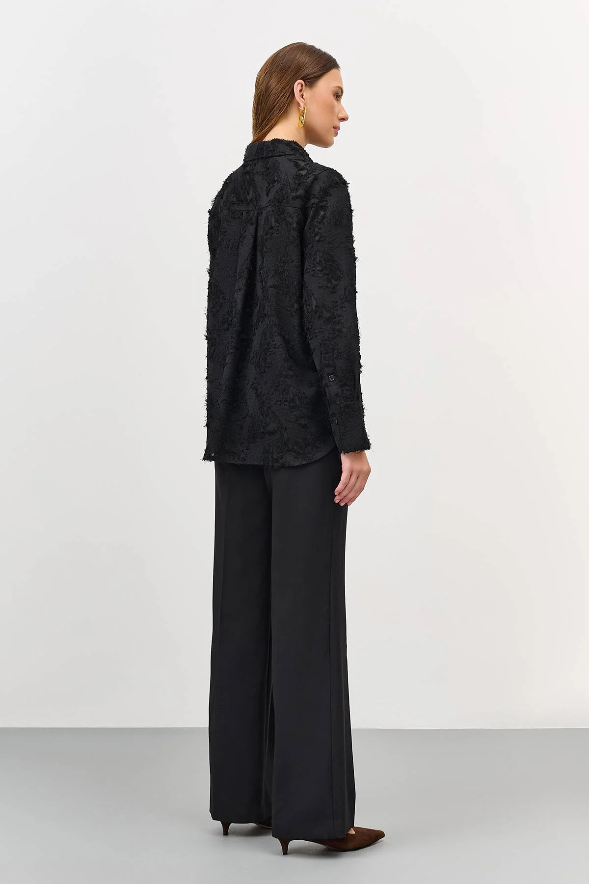 Блузка Savage - блузка из фактурной ткани с ажурными вставками. Свободный силуэт. Отложной воротник. Застежка на пуговицы. Широкие манжеты по низу рукавов. В комплекте с черным ремнем SVG202511.
