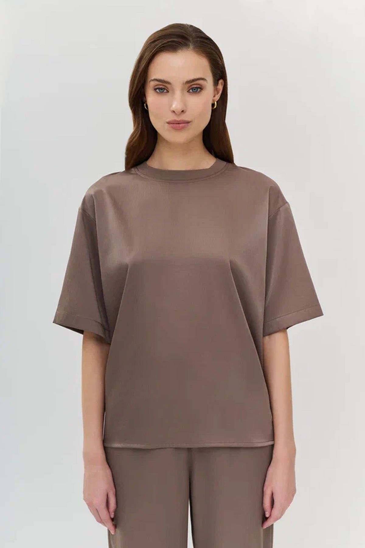 Однотонная блузка в цвете какао с коротким рукавом, 50р