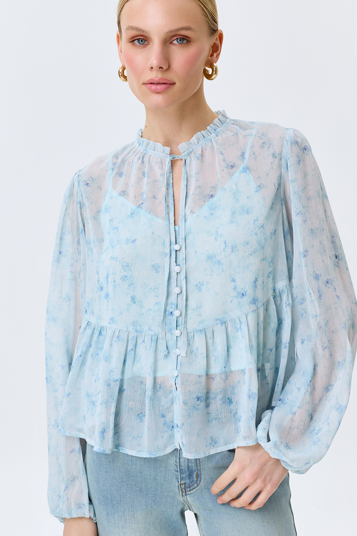 Полупрозрачная блузка с флоральным принтом, 42