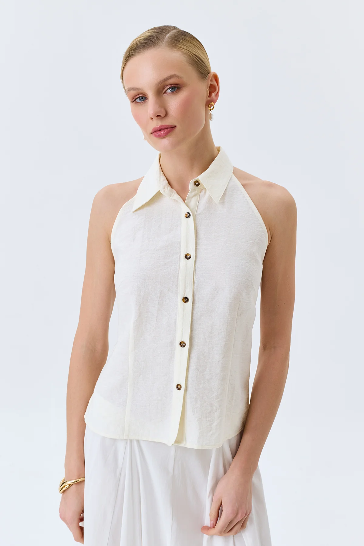 Приталенная блузка с корсетной шнуровкой, 46