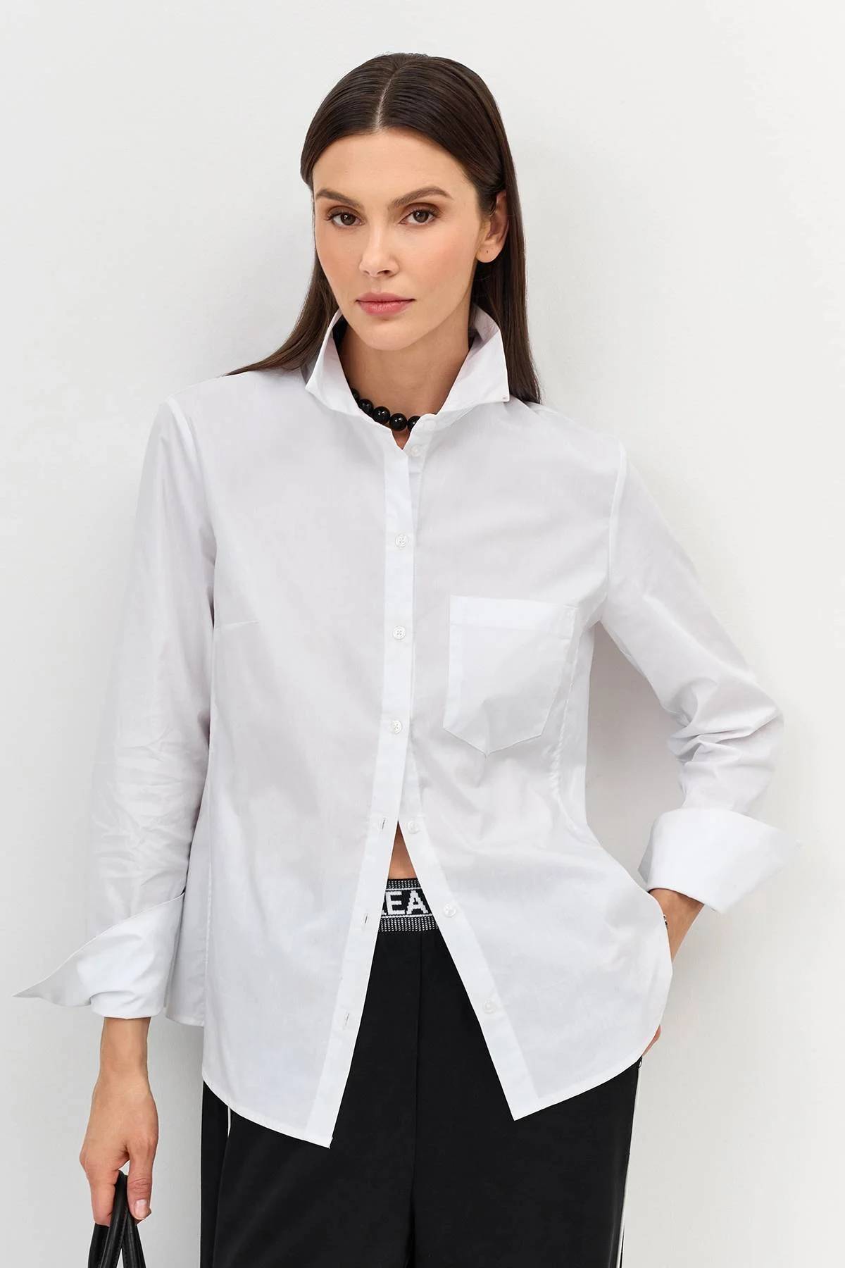Приталенная рубашка в белом цвете, 34