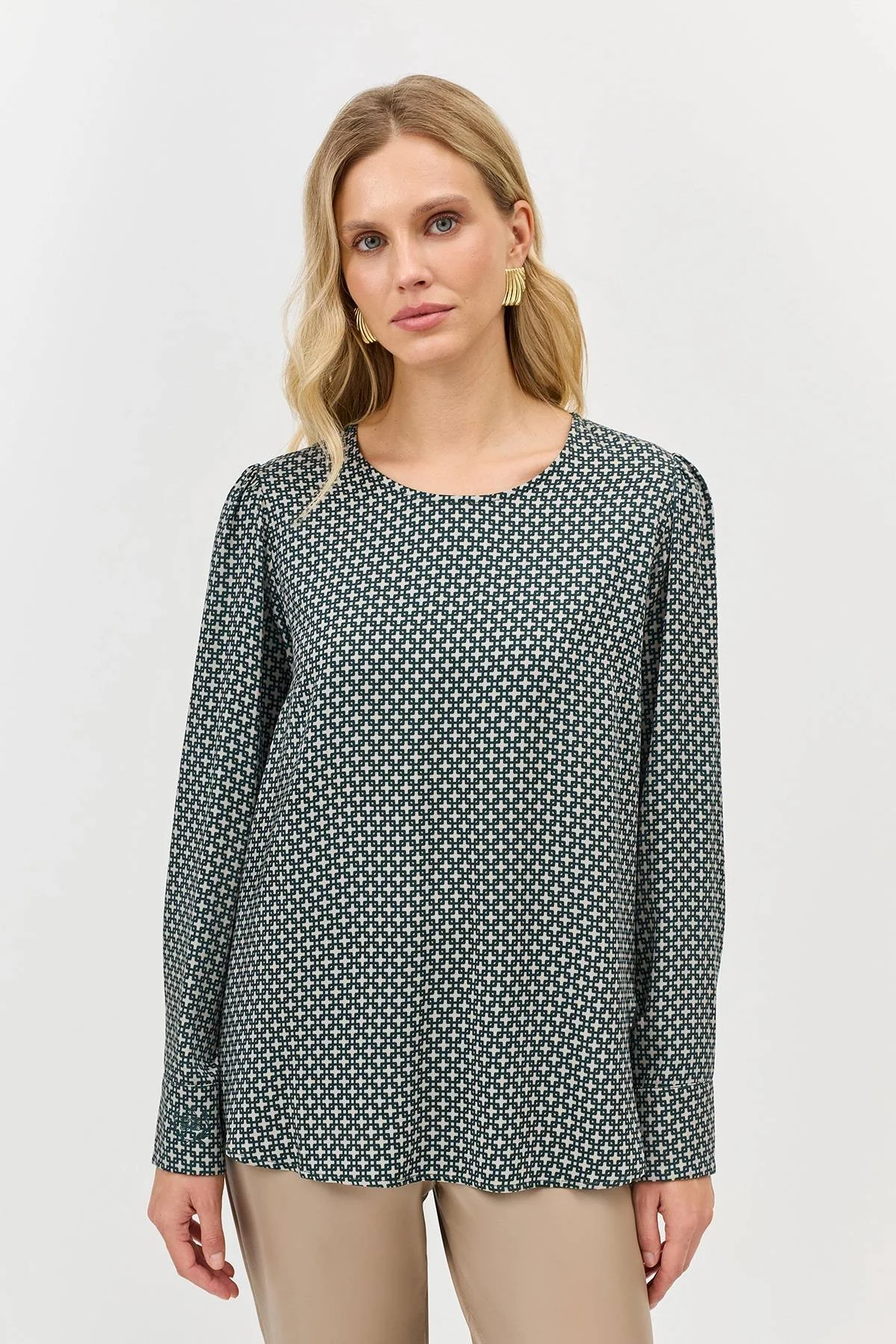 Романтичная блузка с геометрическим принтом, 44