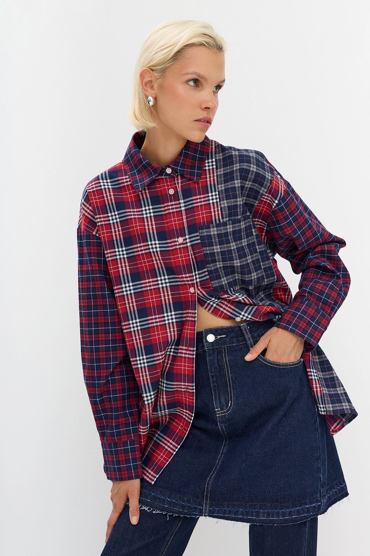 Рубашка в клетку в стиле Patchwork, 42р