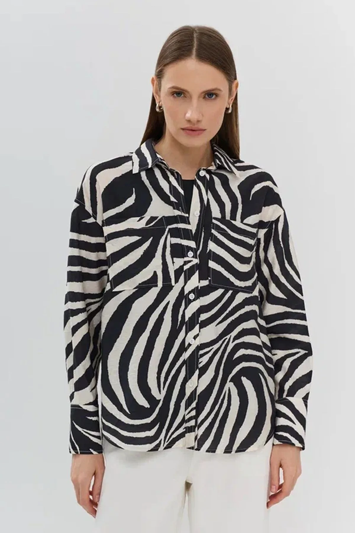 Свободная блузка из вискозы с анималистичным принтом, 42р