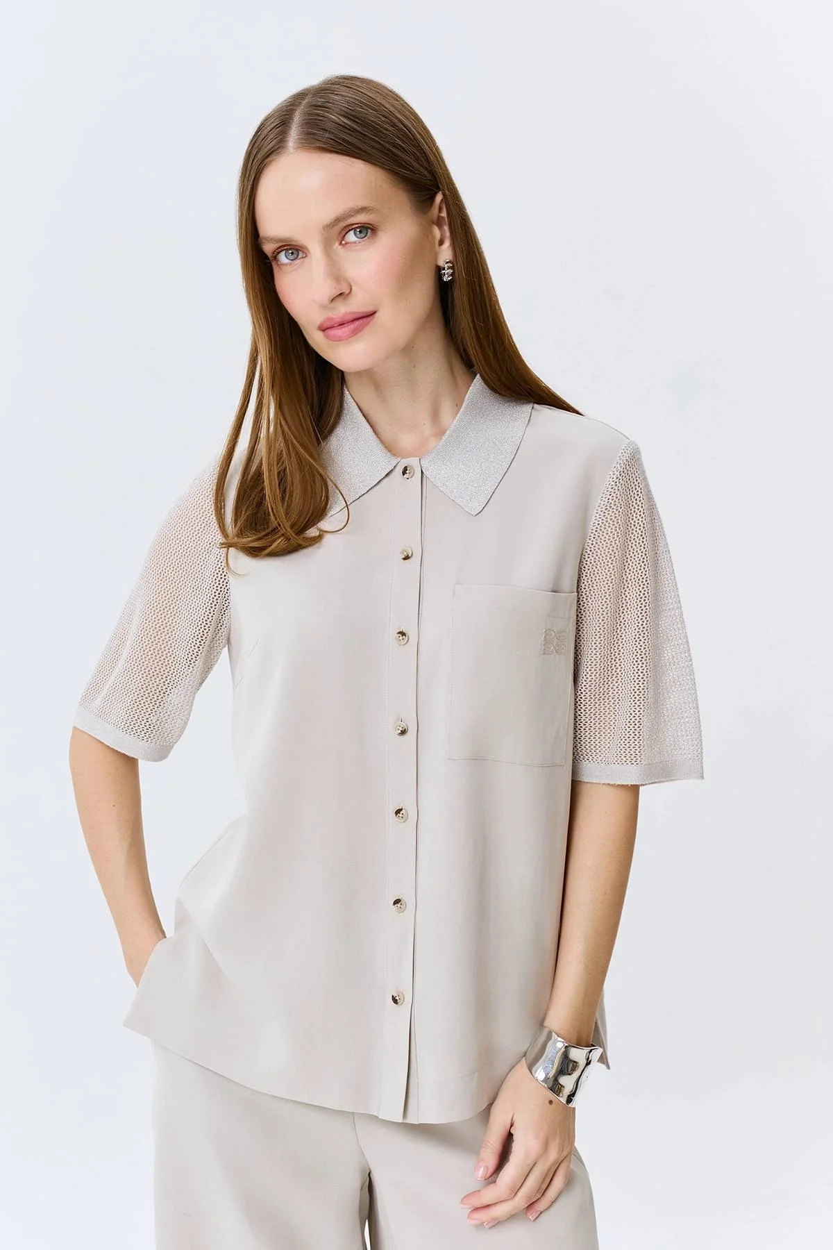 Свободная блузка с ажурными рукавами, 44