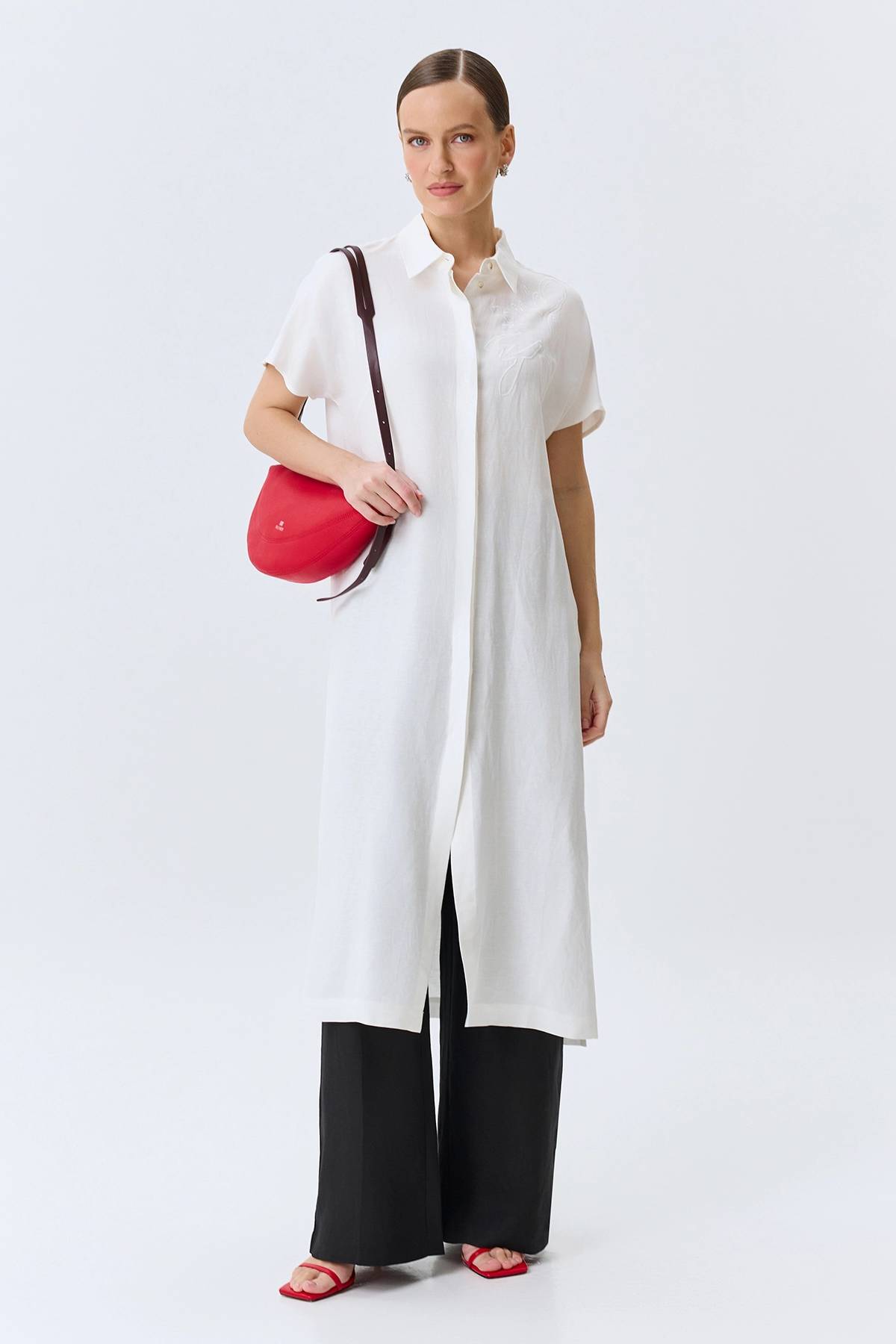 Удлиненная льняная блузка, 40