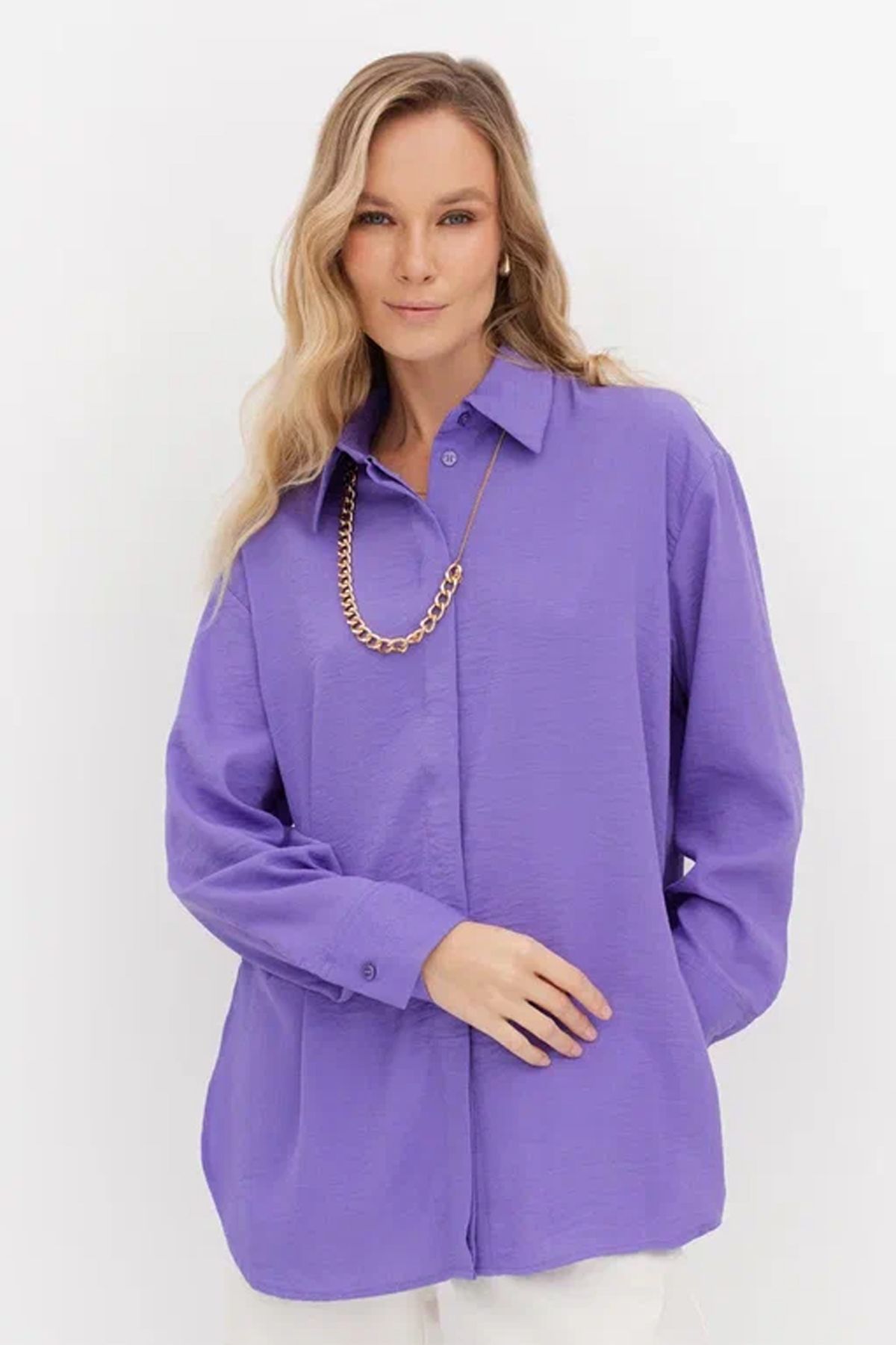 Удлинённая блузка с отложным воротником, 46р