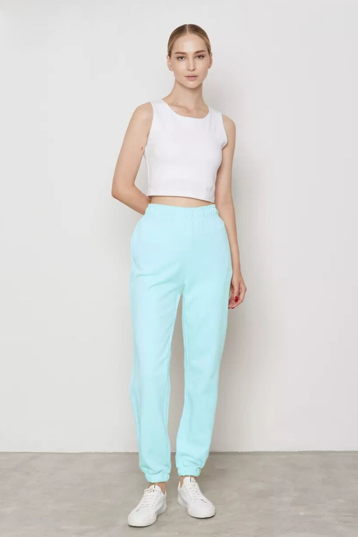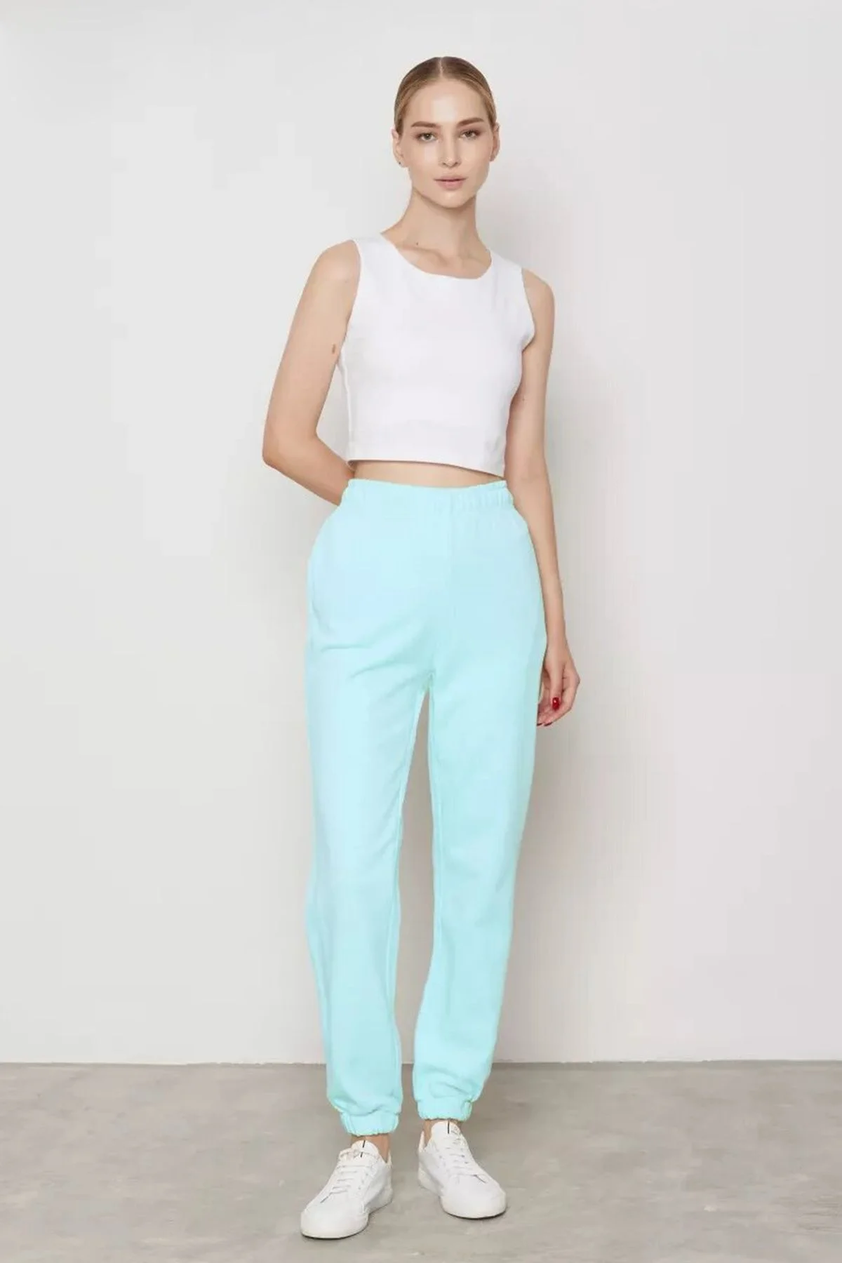 Брюки в цвете аква из облегчённого футера, 42р