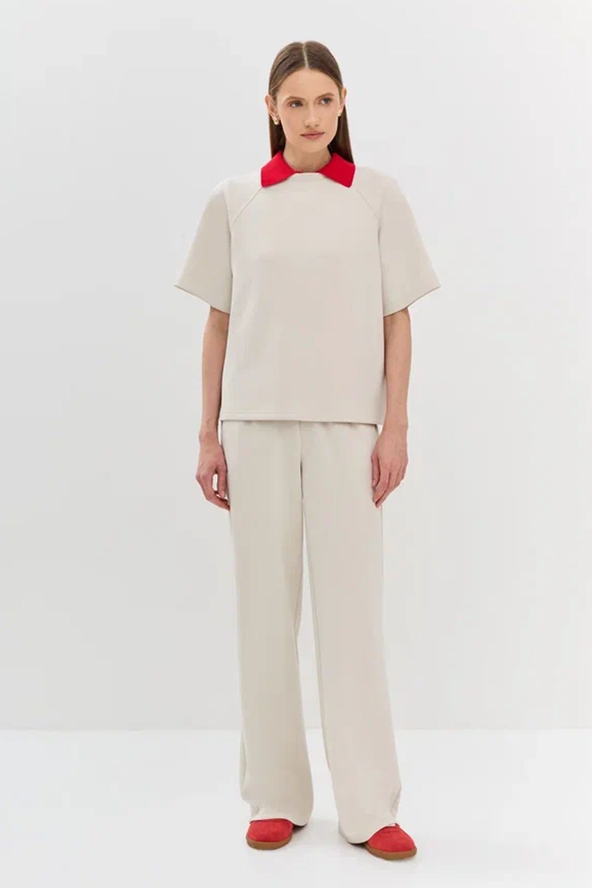 Брюки из смесового модала прямого силуэта в молочном цвете, 48р