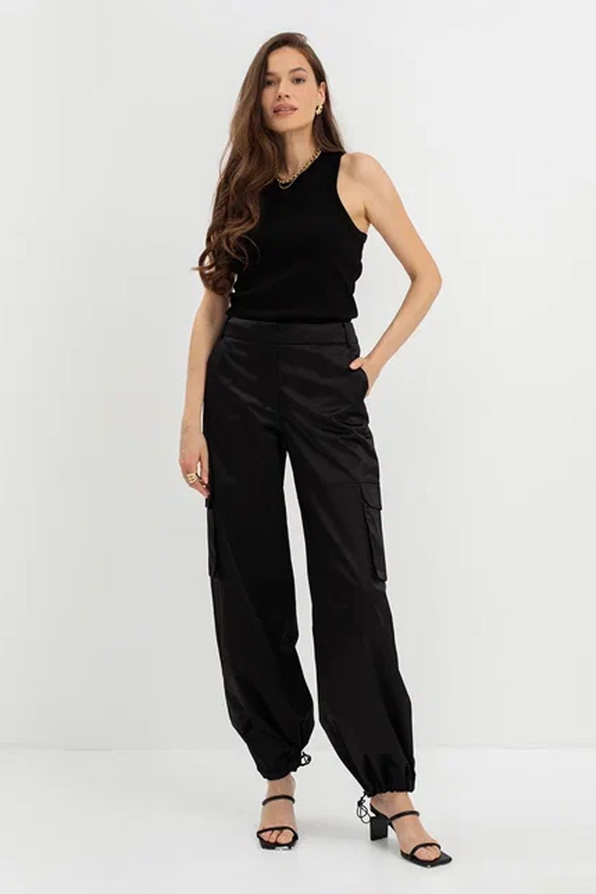 Брюки карго чёрного цвета из сатиновой ткани 43413/9, 46р