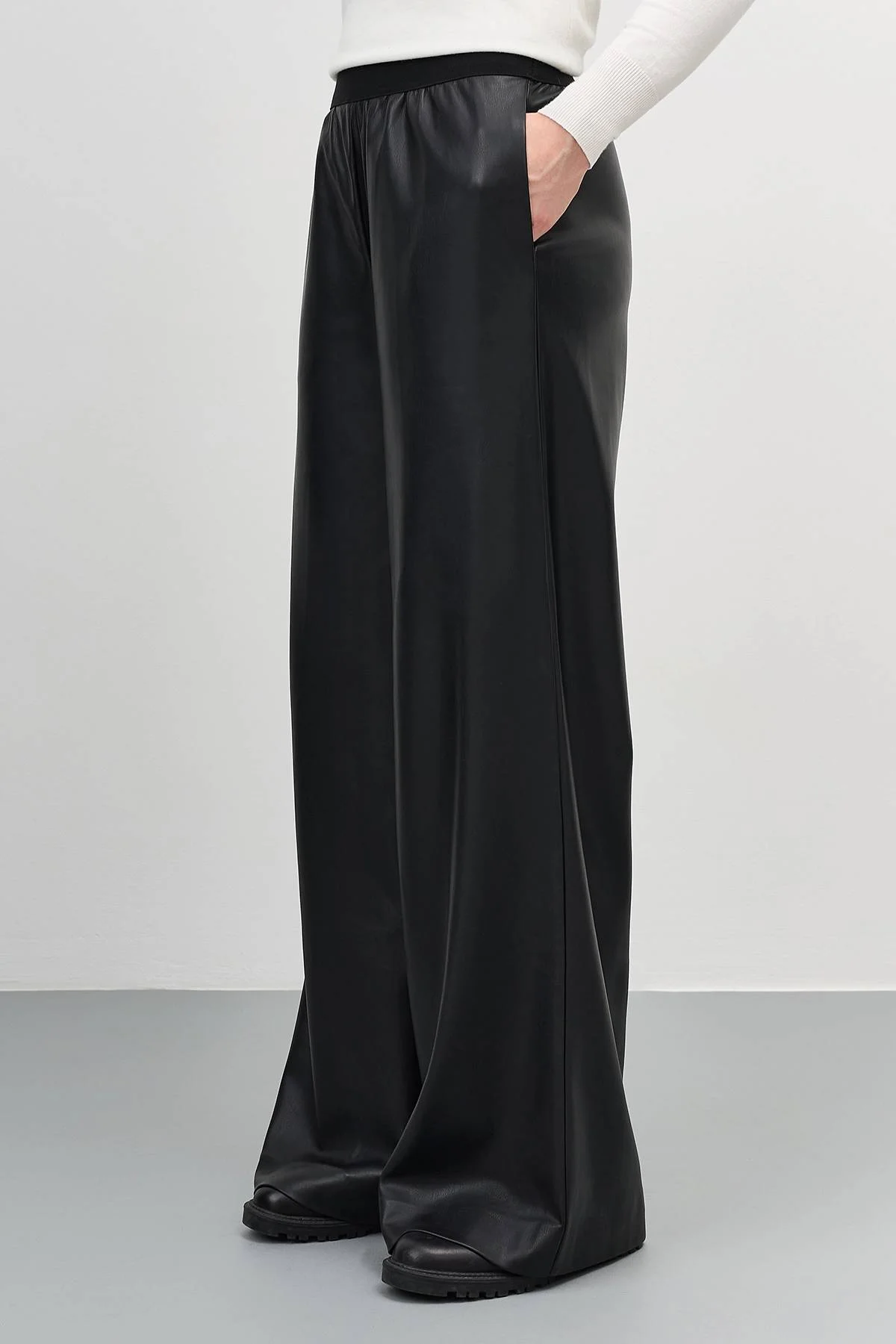 Широкие брюки палаццо из мягкой экокожи. Прямой силуэт. Резинка по линии талии.