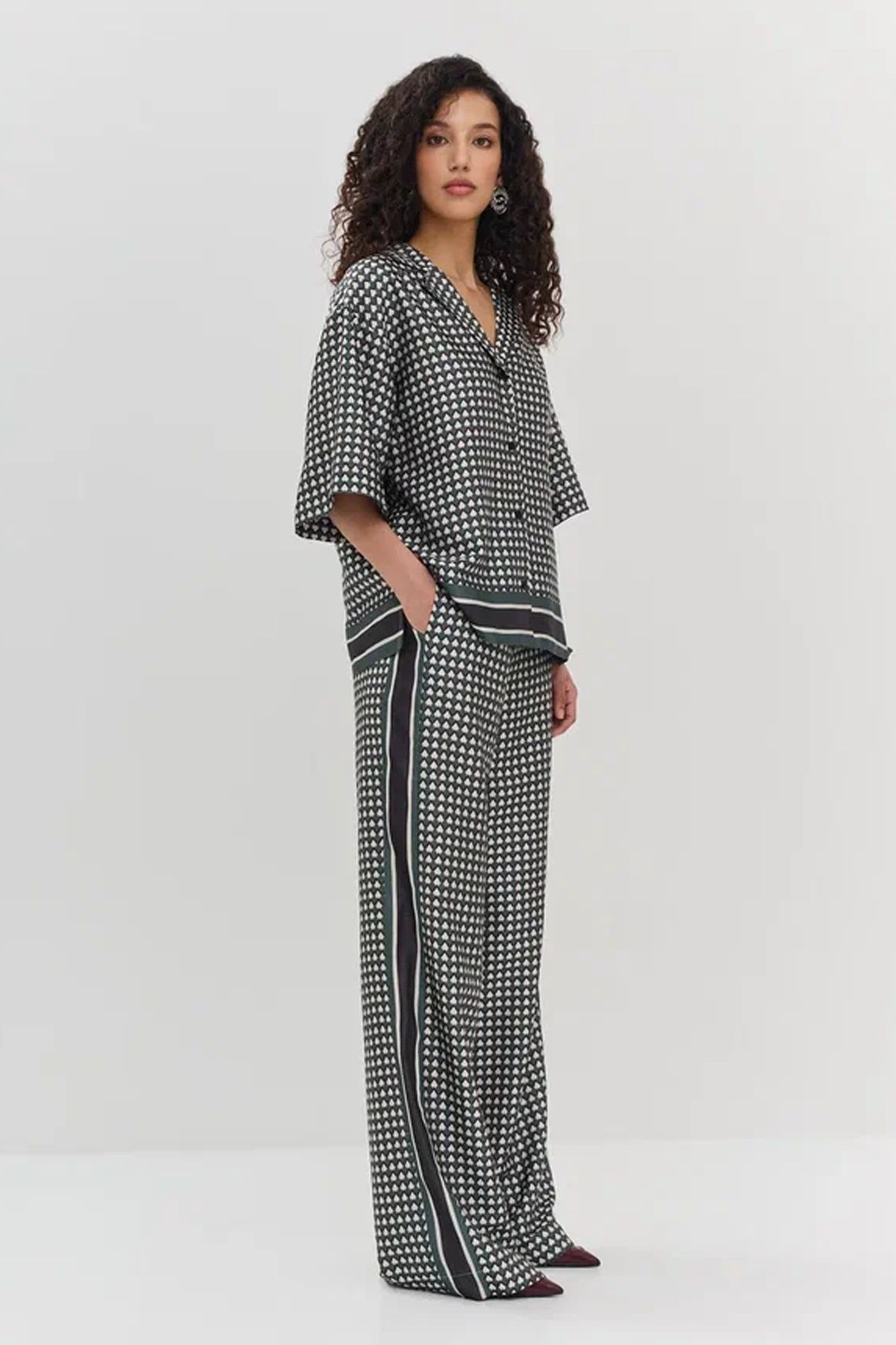 Брюки с геометрическим принтом и резинкой на талии, 52р