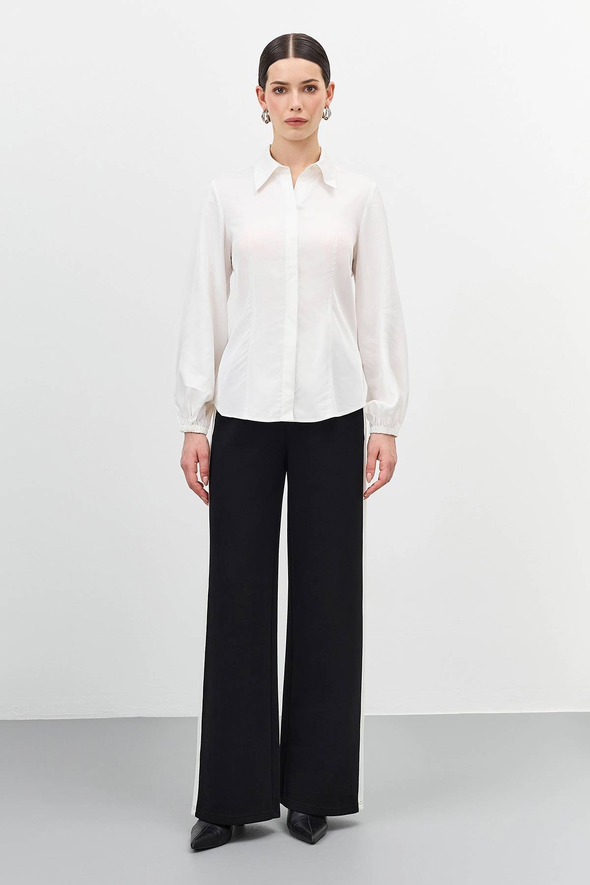 Трикотажные брюки с контрастными лампасами. Свободный силуэт. Резинка по линии талии. Боковые карманы. В составе хлопок.