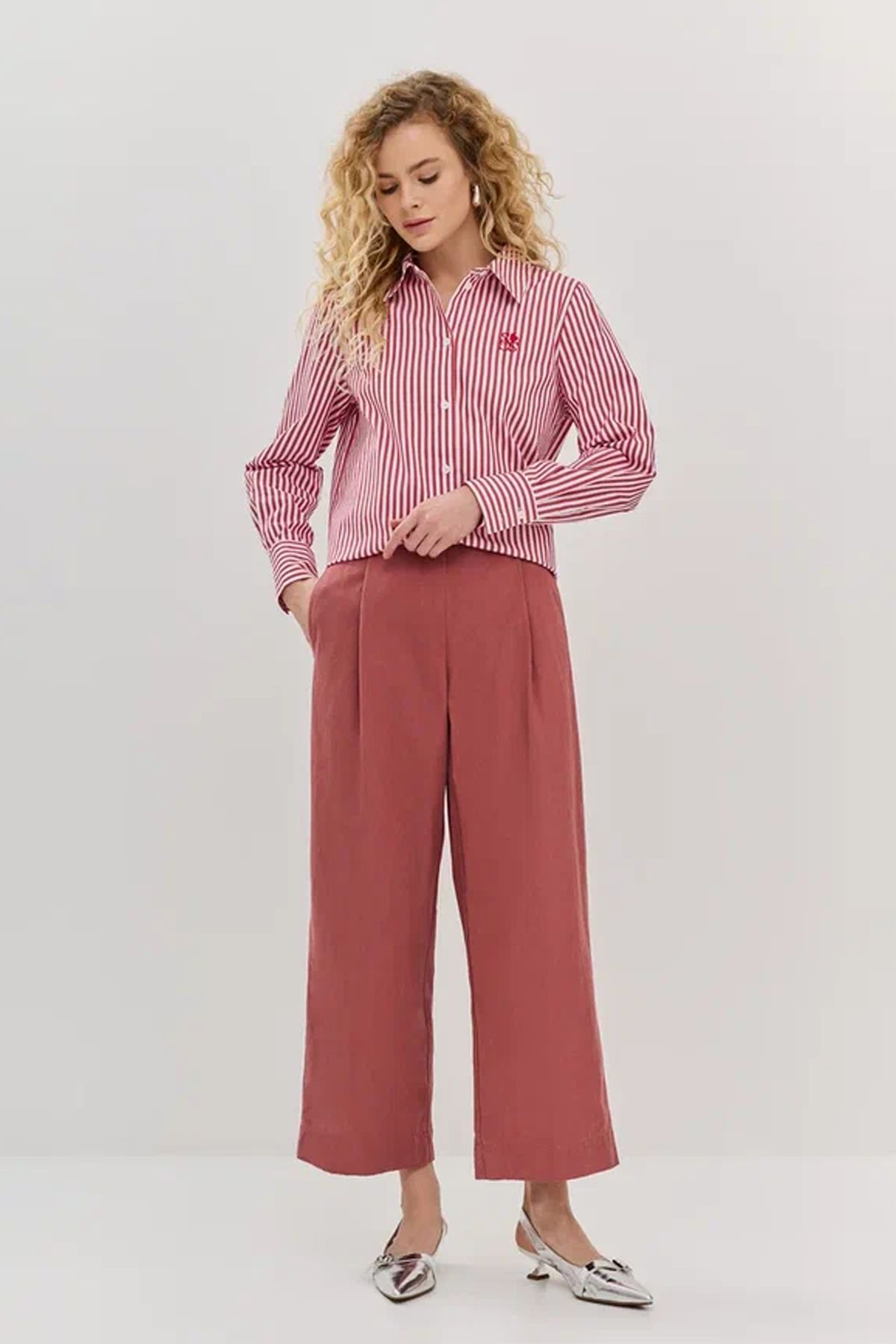 Бордовые брюки с защипами, 44р
