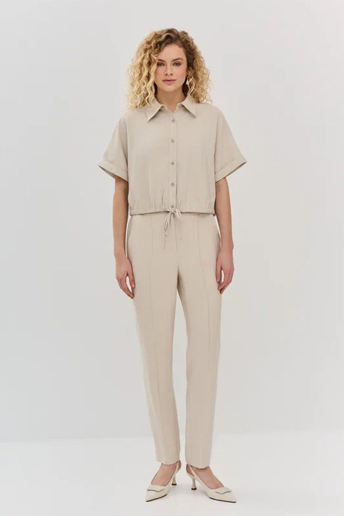 Брюки светло-бежевого цвета с зауженными штанинами, 48р