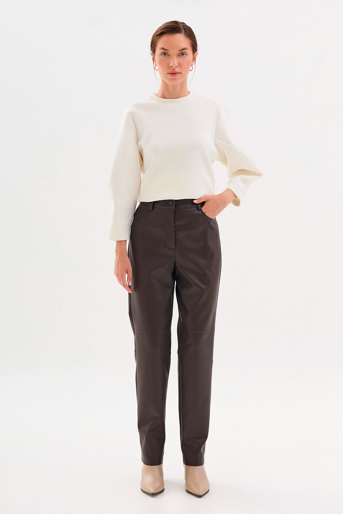 Однотонные брюки из полиуретана в коричневом цвете, 46р