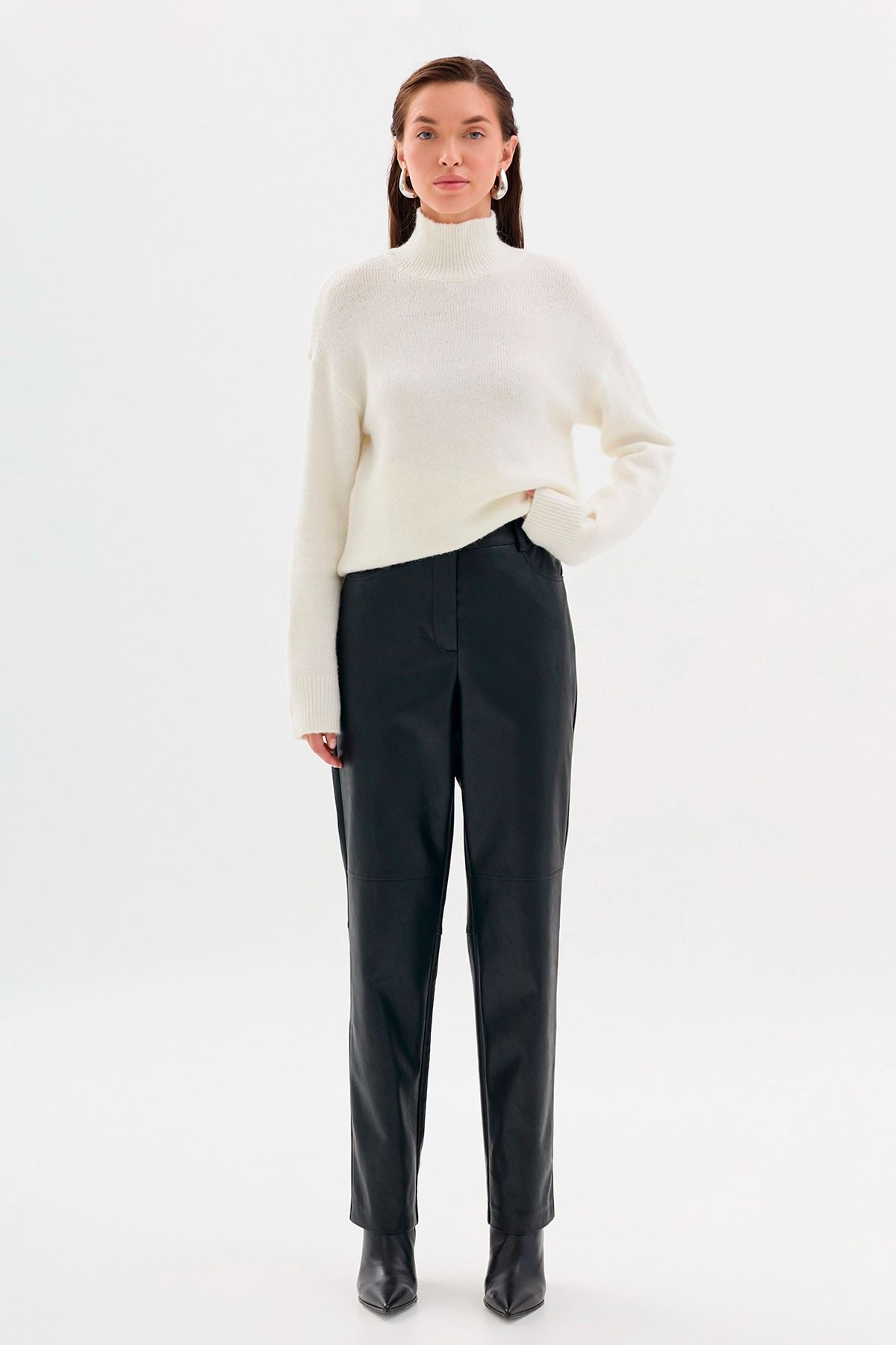 Однотонные брюки из полиуретана в черном цвете, 52р