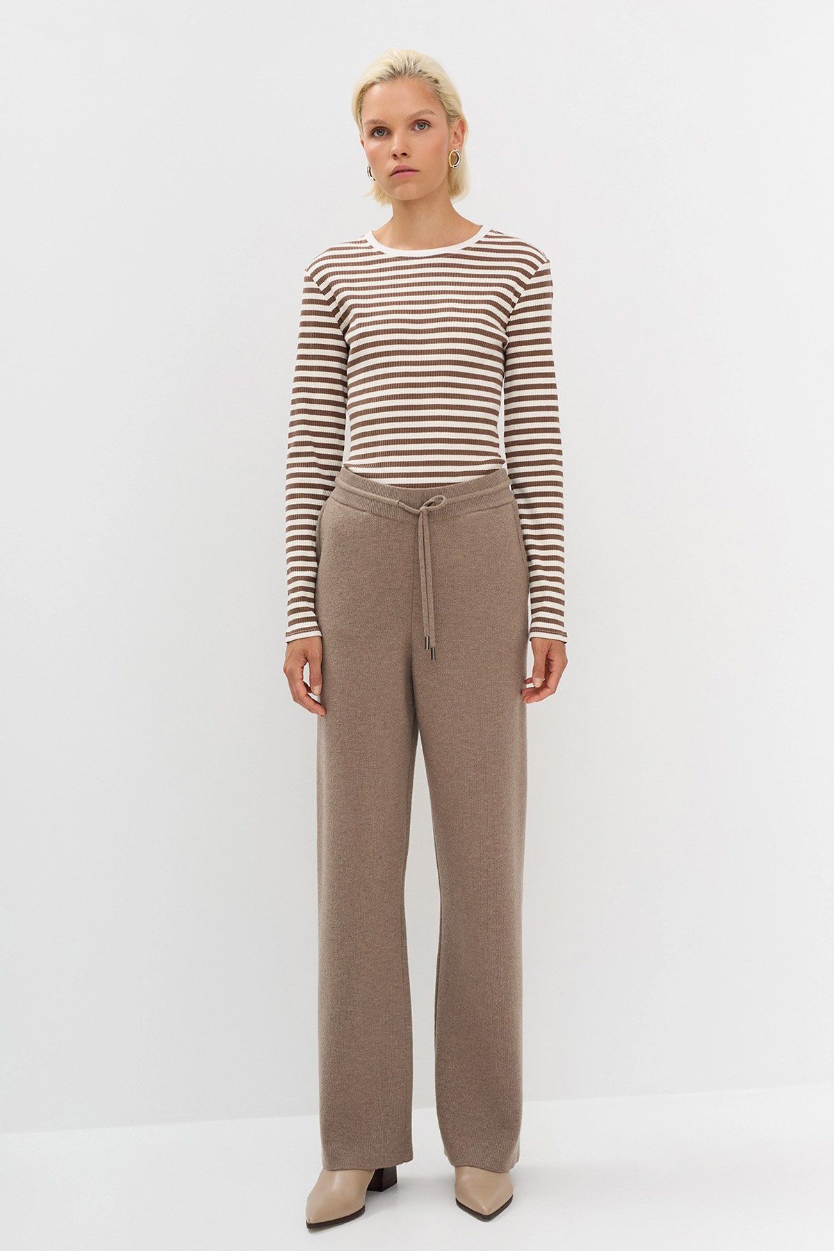 Трикотажные брюки с резинкой и кулисой на талии, 46р
